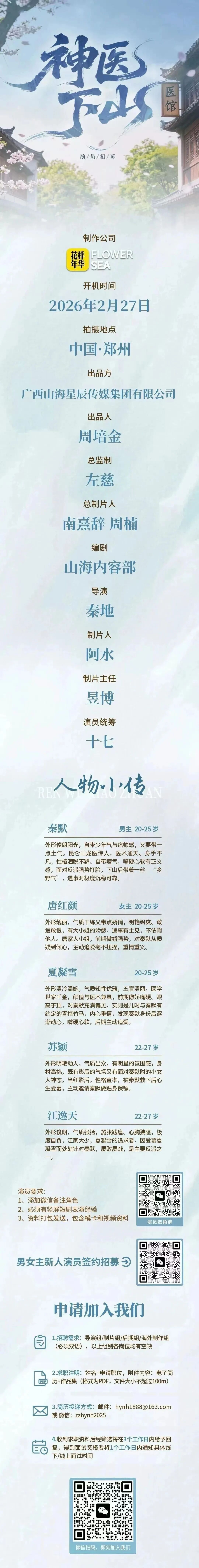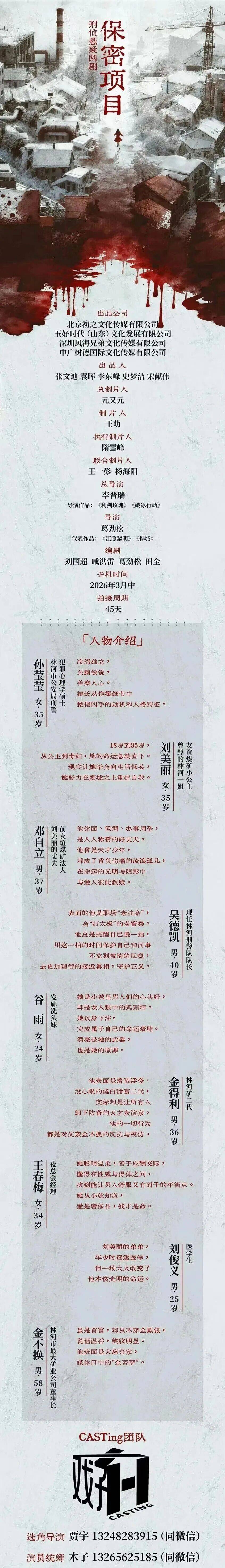 免责声明:戏客Seeker公众号(“本平台”)中全网组讯的信息、内容(“组讯信息”,包括但不限于影视项目名称、项目介绍信息、出品公司信息、导演信息、选角团队信息、拍摄相关信息、联系方式等)均来源于内容信息相关方提供或『互联网』公开信息。本平台不对组讯信息的真实性、准确性、完整性、及时性、关联性、适用性及安全性提供任何明示或默示的担保。请您谨慎参考或使用组讯信息,并确保您的人身、财产安全,本平台不对您使用或参考组讯信息而造成的后果承担任何责任。