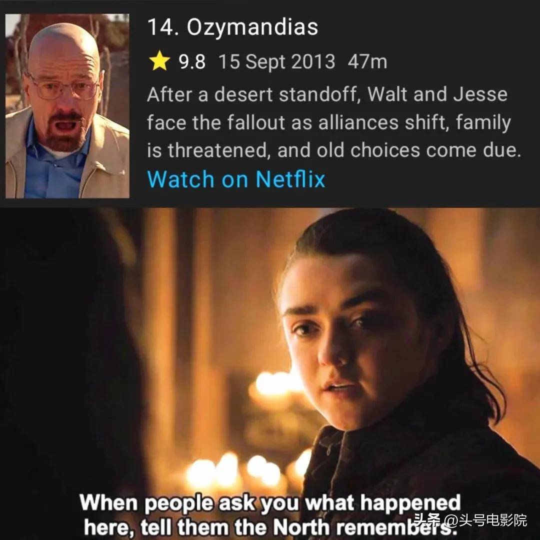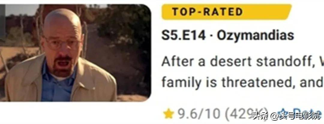 绝命毒师》第五季第14集——Ozymandias。这集不仅在IMDb上稳稳地保持了10分的满分地位,更被《