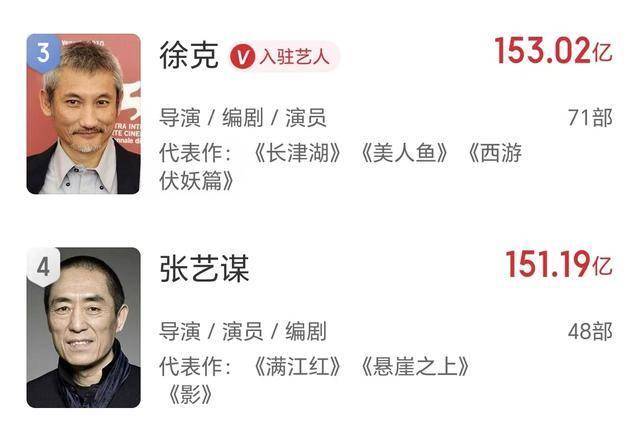 这个成绩,与徐克导演之间仅相差不到2亿人民币。这也就是说,用不了多长时间,『张艺谋』就会超过徐克,进入中国导演执导电影票房榜前三名。