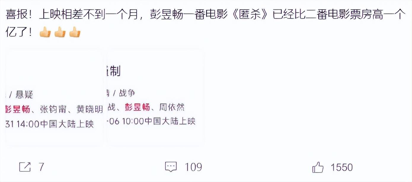 当大部分都在关注彭昱畅的《年少有为》时,很多人并不知道,彭昱畅主演电影正在上映中。我们可以发现,现在电影市场并不景气,大部分电影上映后,关注度都上不去,比如:『林更新』的《马腾你别走》,谢苗的《东北警察故事3》,徐峥的《替身拳手》等等。