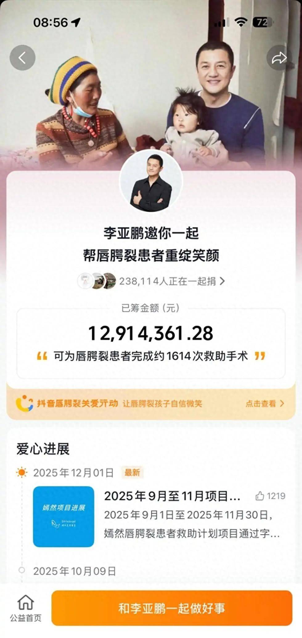 我查了查,他真不是装的。1月嫣然医院欠租被清退那天,他痛风发作走路一跛一跛,还是在直播里把事情讲清楚,没哭穷也没甩锅,48小时真筹到了1291万。钱到账后他没发庆功视频,转头就去接李夏放学,在校门口站了三小时,就为了等女儿放学后说一句“今天数学考了98”。
