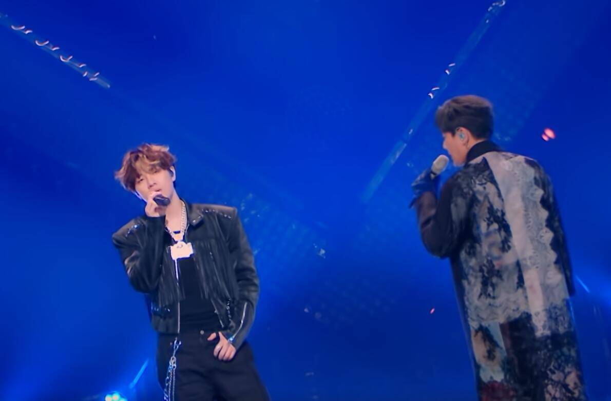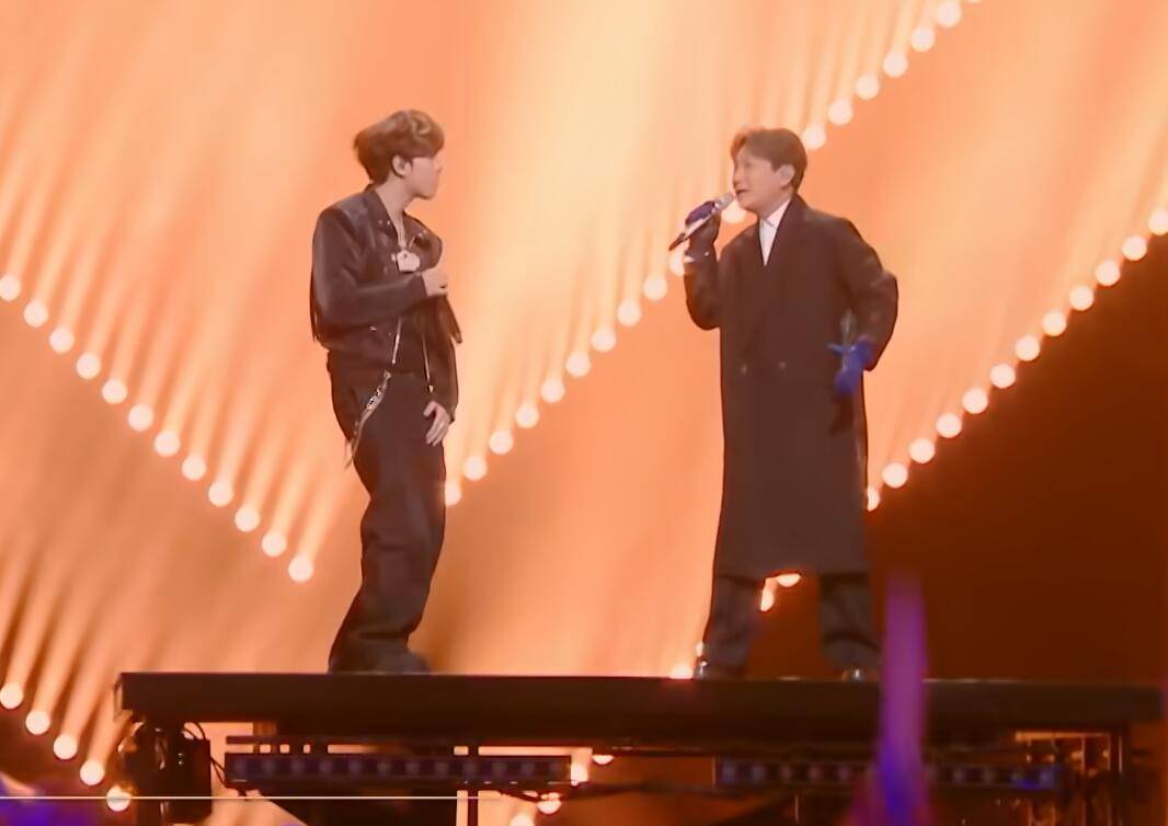 在这次的舞台中,杨博睿和合作对象是张信哲。