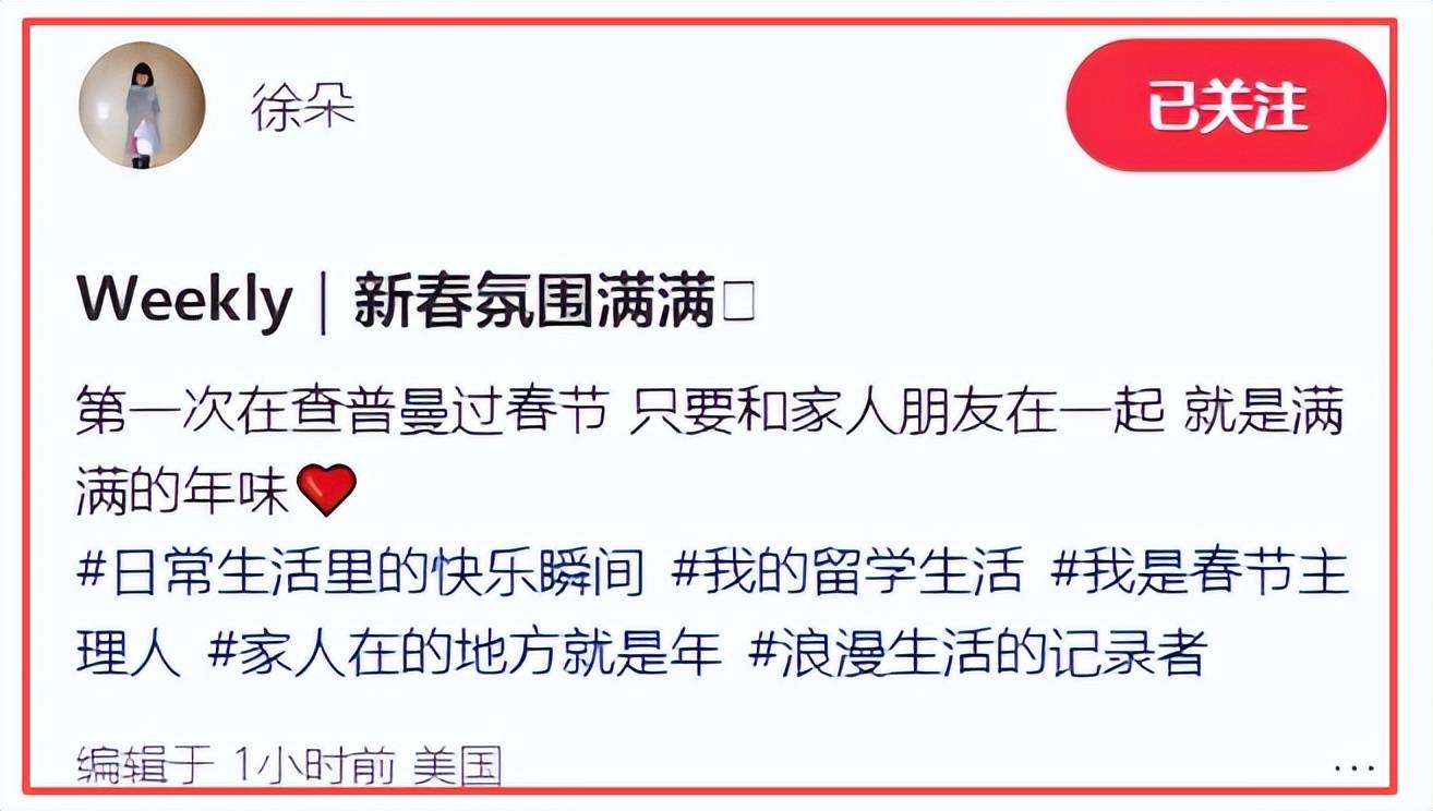 二、春节没在国内过:饺子皮擀得再圆,也挡不住分开徐朵在美国上学,春节那几天照样上课。这事听着就扎心:别人放假团圆,她在宿舍赶作业、做汇报、上课点名。四年没回家过年,不是她不想,是学期表根本不跟农历走。