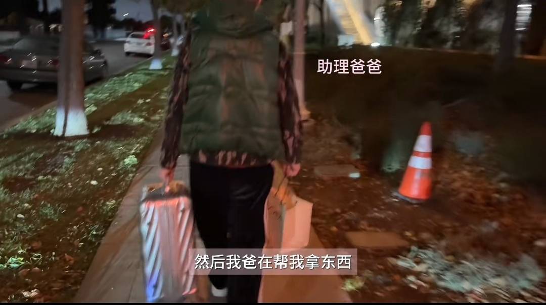 可他手里一边拎行李箱,一边拎购物袋🛍️,走路还刻意慢半拍,像是怕一快,离别就真的到了。