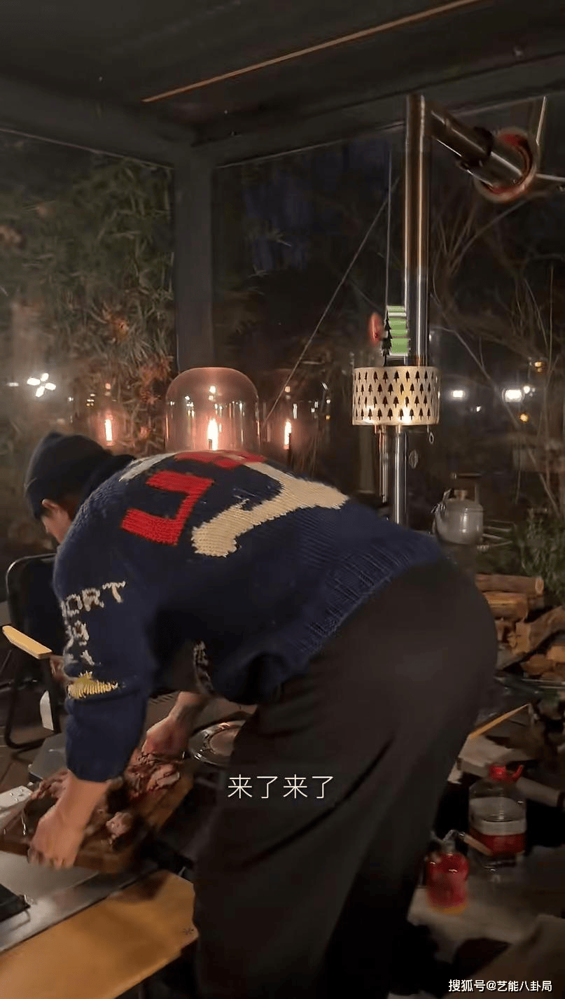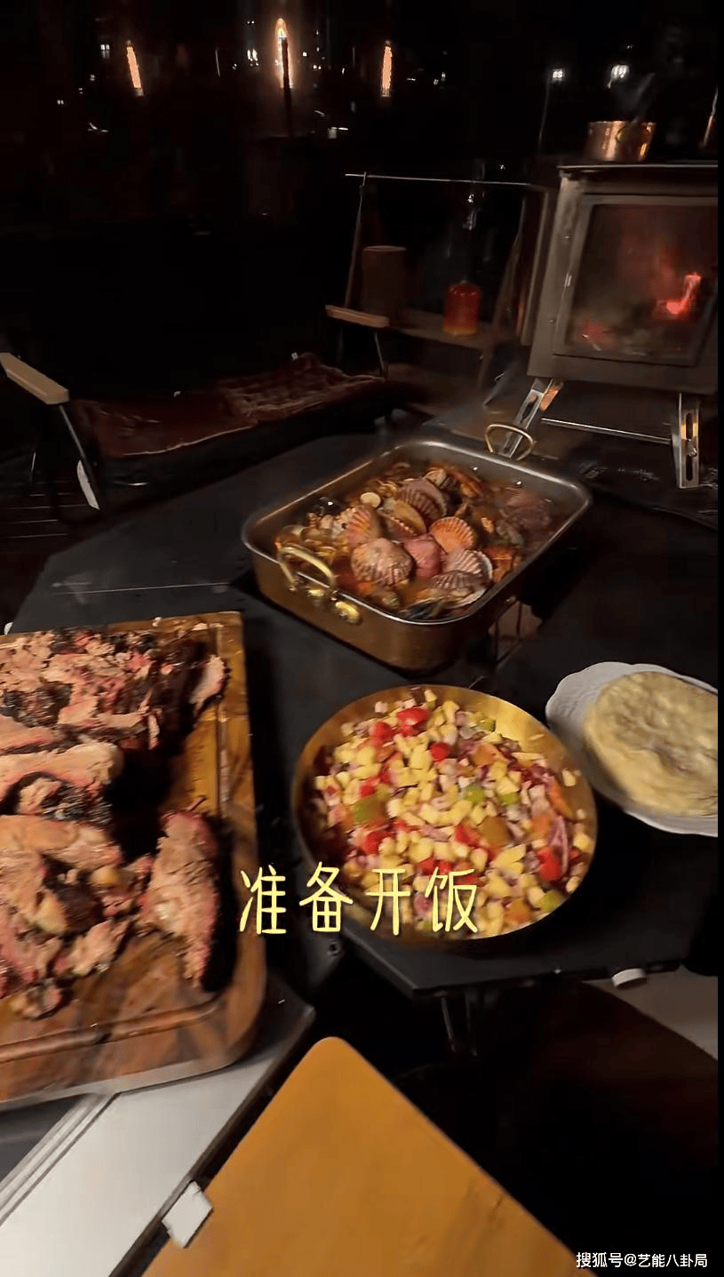 家宴的尾声,曾剑端出了满满一桌子美食,西班牙海鲜汤、酸菜炖大骨、烤肉、鲜螃蟹一应俱全,还有不限量的干白和红酒,色香味俱全,氛围感直接拉满。