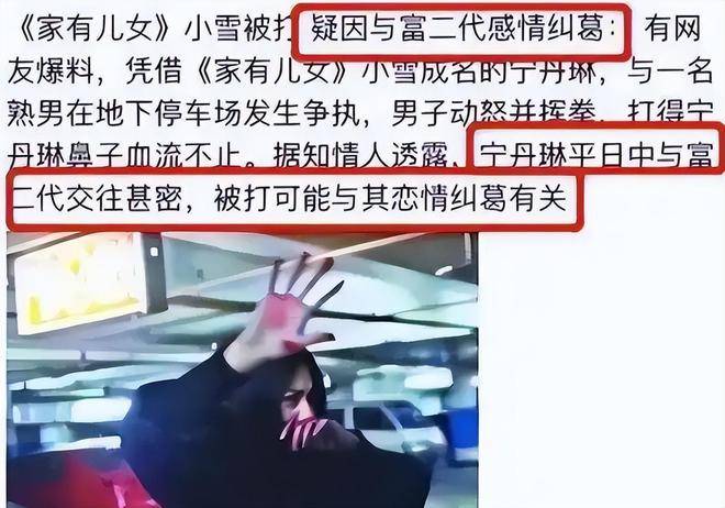 然而,事情的恶化并没有就此结束。有人传言说宁丹琳在地下停车场遭遇暴打。这件事本来就已经够不幸的了,但更不幸的是,事情的真相被恶意扭曲。一个醉汉认出了她,随即纠缠不休,她奋力反抗,结果遭到暴力对待,鼻子流血,场面一度非常狼狈。这本是一起突如其来的不幸事件,然而被拍下并传到网络后,却迅速演变成了另外一种故事:有人说她和富二代男友争执被打,也有人恶意猜测她的鼻子是整形过的,这次暴打才导致了流血。她明明是受害者,却被迫背上了更多不实的谣言。