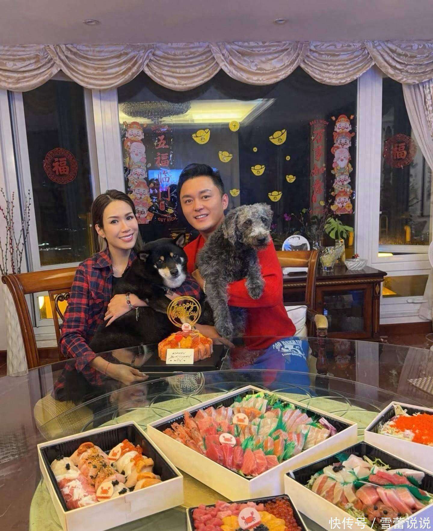 那天,两个人窝在家里庆生,桌子上摆满了三文鱼刺身、蛋糕和海鲜,简直就是把吃货属性发挥到极致。杨明穿着一件红色卫衣和蓝色裤子,面对镜头吐舌头做鬼脸,完全看不出四十多岁的人,显得比实际年龄年轻太多。虽然拍照时他亲了庄思明的脸颊,那动作有些闭嘴式的含蓄,但两人之间那种老夫老妻的默契,隔着屏幕都能感受到,仿佛能闻到那股熟悉的温暖。