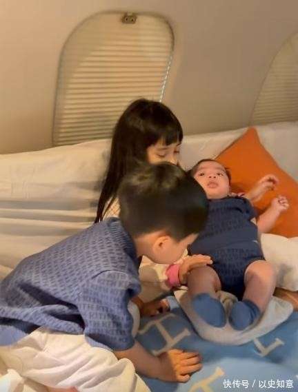 除了标准的公务舱设施外,机上还特别规划了一间配有两张独立大床的专属套房,配有独立卫浴与智能控制系统,堪称空中的轻奢居所。小宝贝在套房里被哥哥姐姐们围绕着,温柔的抚抱和清脆的笑声填满了整个空间,亲昵的互动自然流露,画面中的温暖令人动容。