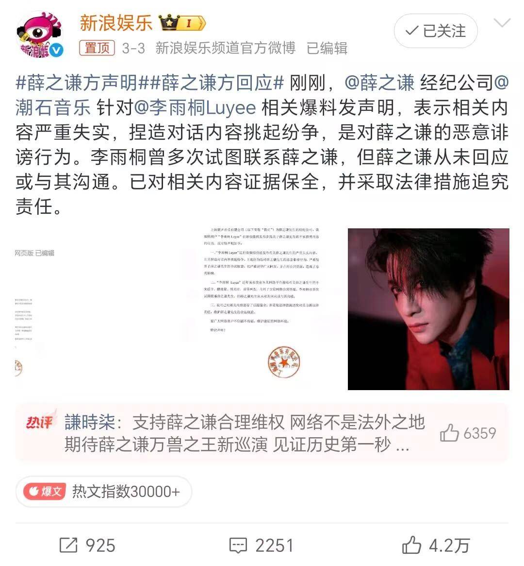 咱们先把时间线捋一捋。就在前几天,3月2号晚上,李雨桐这位姐像是吃了炸药包,深夜在微博上疯狂“开麦”,实名举报『薛之谦』涉嫌重婚罪,那话说得叫一个狠,直接控诉对方“杀了我的孩子”,还义正言辞地呼吁警方彻查。好家伙,这词儿一甩出来,谁听了不哆嗦一下?那可是“杀人”啊,这可是涉嫌“重婚”啊,哪个罪名拿出来不得让『娱乐圈』️抖三抖?当时那话题就跟坐了火箭似的,“嗖”地一下就爆了热搜,全网的目光“唰”地一下全聚焦过来了。大家心里都嘀咕:时隔八年,这姐们儿手里是攥着多大的雷啊?这是要把『薛之谦』炸得粉身碎骨吗?