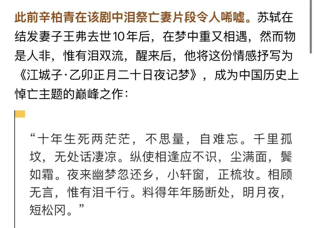 朱媛媛离世将近一年,辛柏青终于带来了他复工的消息——这一次,他将以全新的姿态重返舞台。由他领衔主演的《苏堤春晓》,定于4月10日至12日率先与观众见面。在这部作品中,辛柏青饰演的是历史长河中光芒闪烁的苏轼。