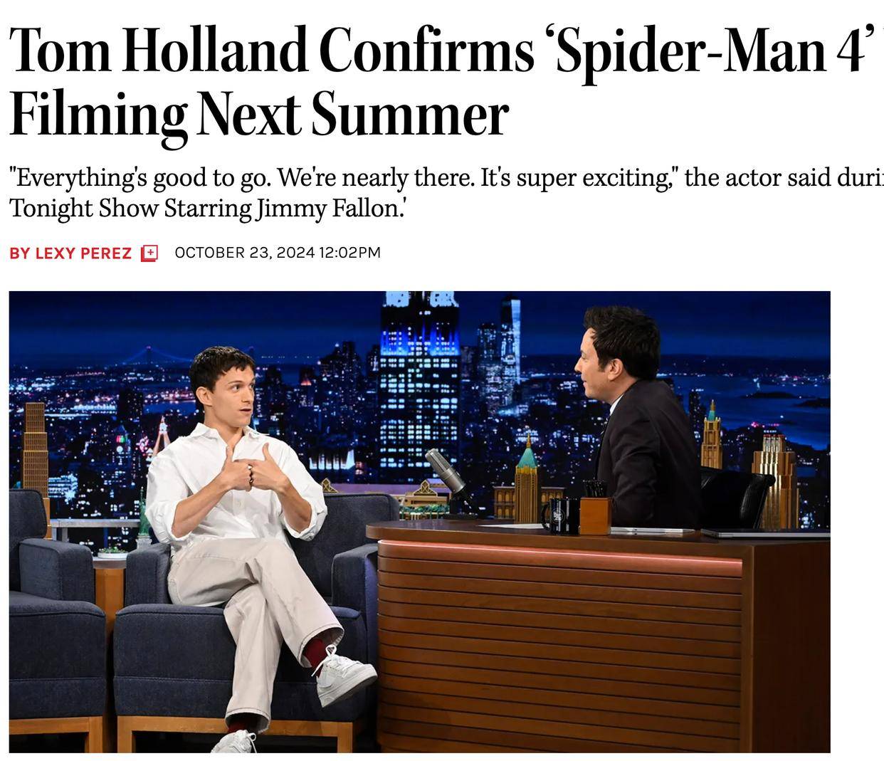 在吉米法伦的综艺节目当中,荷兰弟确定《蜘蛛侠4》会进入拍摄流程,他不会离开《小虫》这个角色。《THR》的影评人莱克西谈到了这个话题,汤姆·赫兰德继续饰演《蜘蛛侠》,这个决定很正常,但是他必须通过这部系列进行转型,不然的话荷兰弟的演艺道路会越走越窄。莱克西希望荷兰弟舍弃“少年角色”,首先,大家需要承认乔沃茨时代的《蜘蛛侠》属于少年电影,《小虫》是典型的少年角色,这一举动也被DC影业模仿。华纳推出了《蓝甲虫》也是典型的“少年角色”,据说就是因为DC工作室的负责人看到了漫威影业的成功,他们让《蓝甲虫》成为了青少年,并且主演马里多纳也是少年演员。
