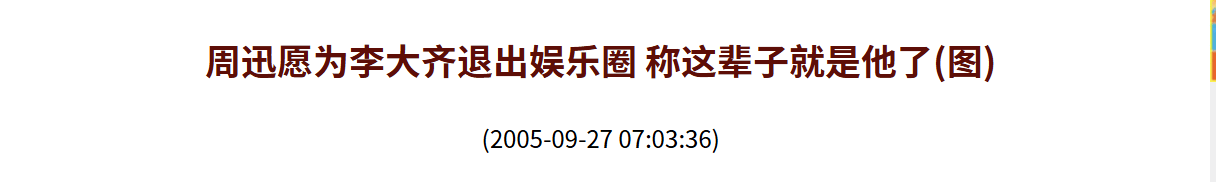 两人好聚好散,分手分得很体面,没有辜负相爱一场。李大齐回到台湾老家发展,开始新的生活,『周迅』也没有停留脚步,很快她就遇到了心动的人,全情投入新的感情中。