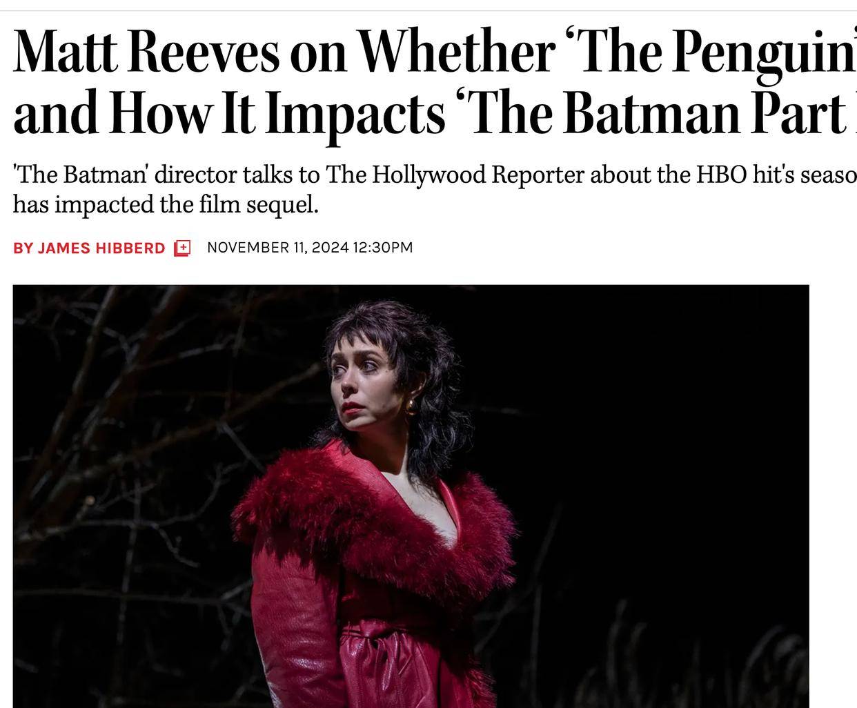 新版《蝙蝠侠》的导演马特·里夫斯接受西博德的专访,他俩谈论了《新蝙》的衍生类作品,《企鹅人》能否一鸣惊人?西博德指出里夫斯偏重于细节,《企鹅人》的保底票房还不错,但是这部系列很难取得真正的成功,不太可能创造《奇异博士》那样的奇迹。漫威的粉丝们很清楚,《奇异博士》属于《蜘蛛侠》的单人作品,然而外传比正传还火爆,这种情况在超级英雄的领域很少见。不少人希望DC影业也能复制MCU工作组的传奇,他们把希望寄托在《企鹅人》的身上,而且这个角色也是反派。不过西博德认为,导演的思维偏重于细节,而且里夫斯描绘人物的首发很细腻,不容易让《企鹅人》获得奇效。