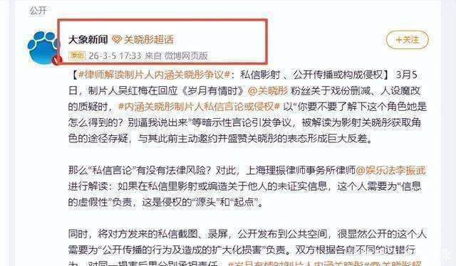 『关晓彤』在那部名为《岁月有情时》的年代剧中辛苦演了整整四个月,然而剪辑完成后,她几乎沦为了背景板。『制片人』吴红梅的一句私信,更像往已经沸腾的八卦汤里扔了颗哑弹,让局面瞬间炸开。要是把这事放在三年前,哪怕『制片人』再小心翼翼,也不敢对昔日的格格出言阴阳怪气。可如今呢?