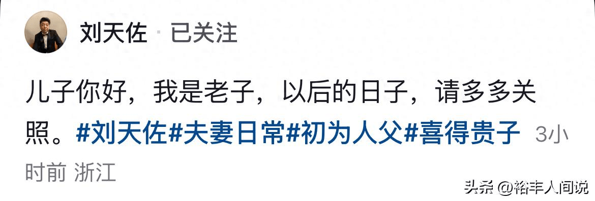 3月14号,46岁、曾在《盗墓笔记》中扮演王胖子的演员刘天佐官宣得子,他动情表示以后请儿子多多关照。画面中,孩子穿白色睡衣躺在婴儿床上,刘天佐还戴帽“充当”产妇,场面搞笑。