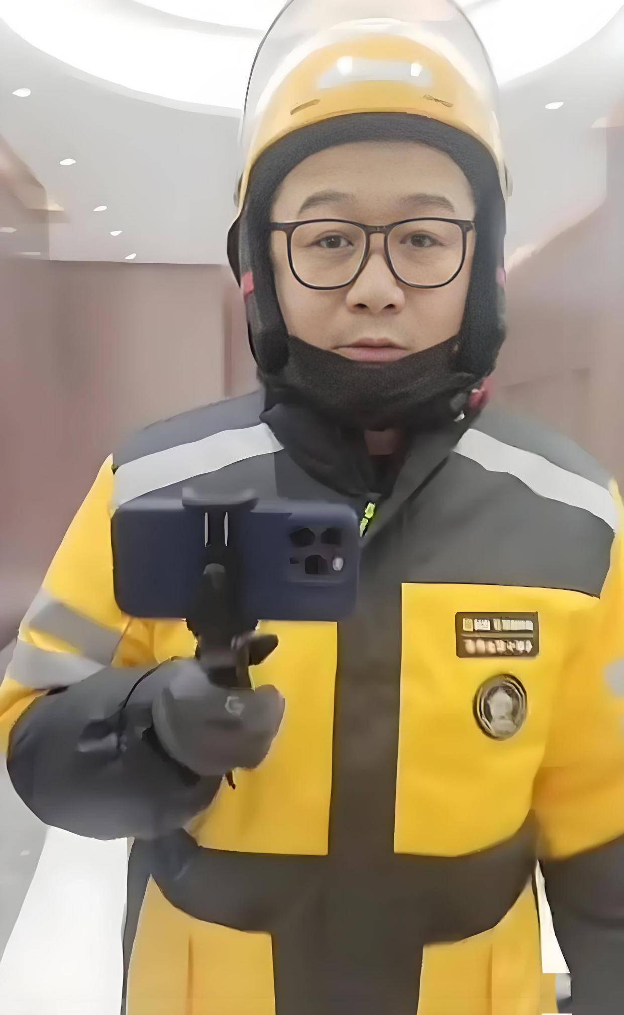从网友晒出的照片来看,高虎身穿某外卖平台的工作服,头戴安全头盔、架着一副眼镜👓,穿着『打扮』和街头普通外卖员别无二致,丝毫看不出往日的『明星』️光环