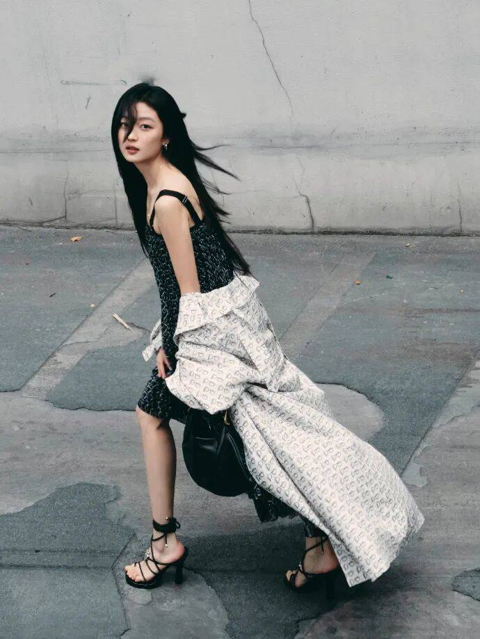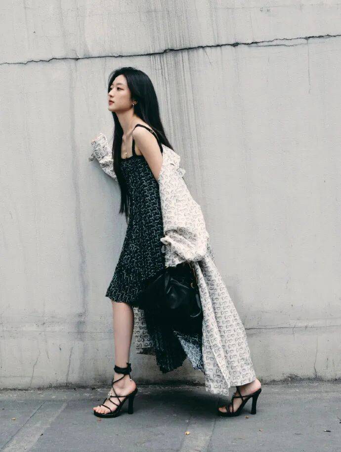 看着这组照片,我突然觉得时尚真是个奇妙的东西。它能让一件普通吊带裙变成艺术品,让双绑带鞋成为行走的诗行。而孙千就像个魔法师,把黑白两色玩出了彩虹的层次,用最基础的单品搭出了最惊艳的效果。这大概就是时尚的真谛——不是穿最贵的衣服,而是穿出自己的态度。