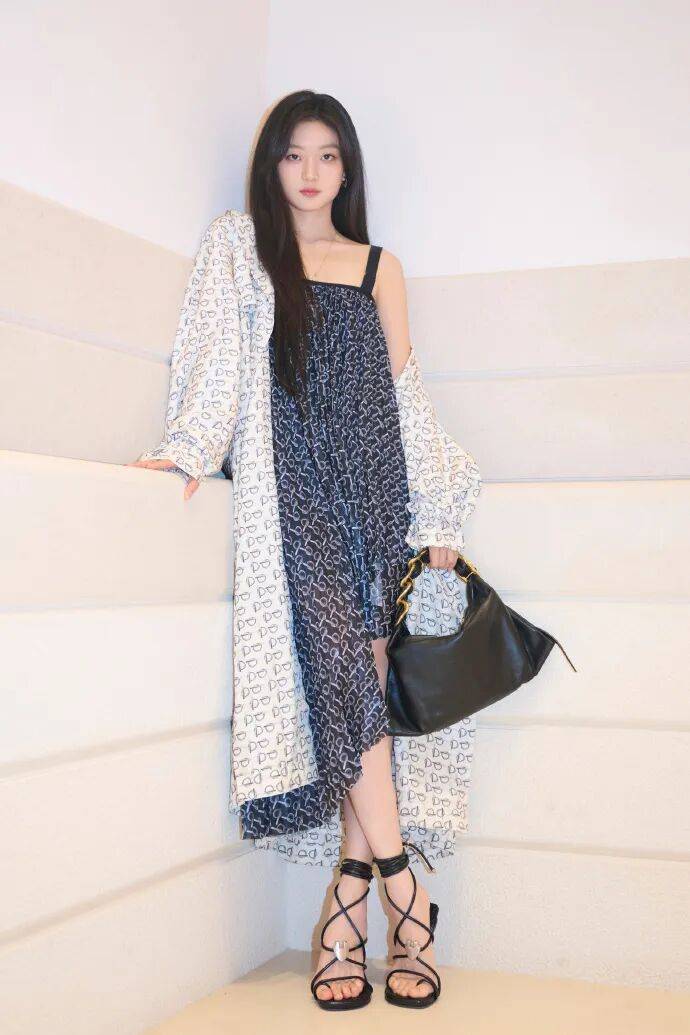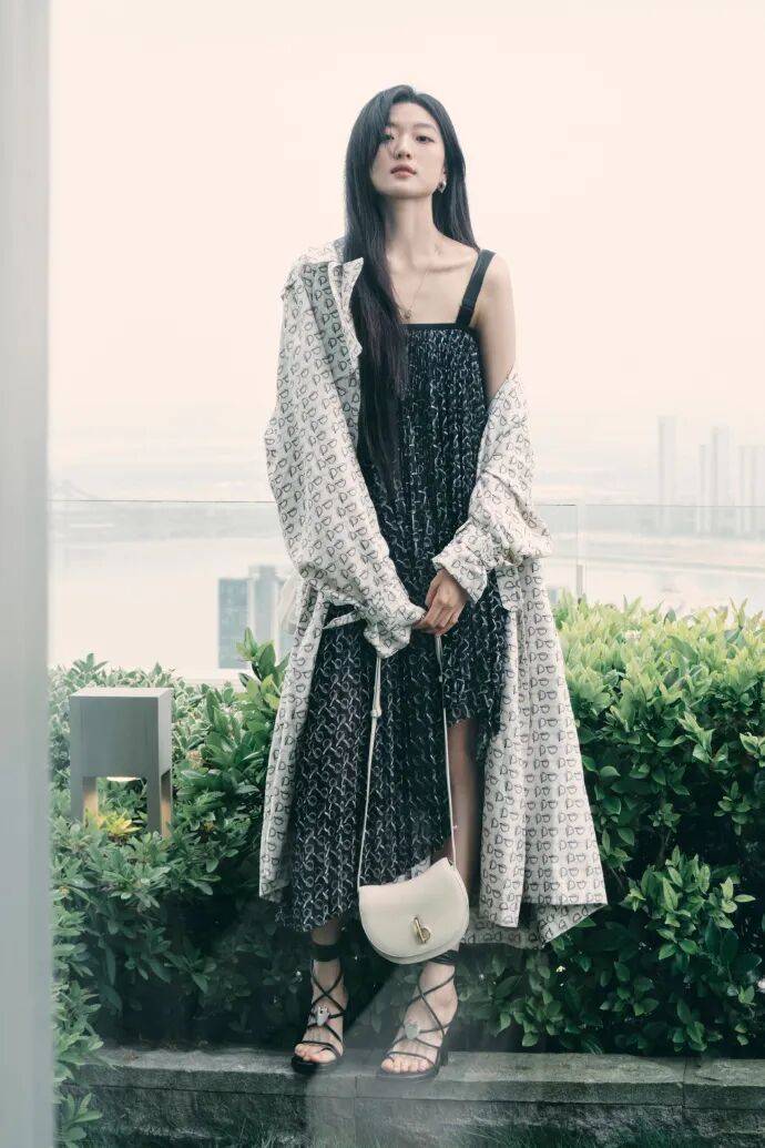 最妙的是她那些小动作——撩头发时手指故意蹭过耳后,喝咖啡时让杯口在唇边停留三秒,走路时让鞋跟敲出轻快的节奏。这些细节让整身『穿搭』活了过来,不再是平面杂志上的模特图,而成了会呼吸的时尚标本。就像伍尔夫说的"生活不是一系列对称的灯,而是一圈明亮的蜡烛",孙千用这身『穿搭』证明,真正的时尚从来不是完美无缺,而是留有想象空间。