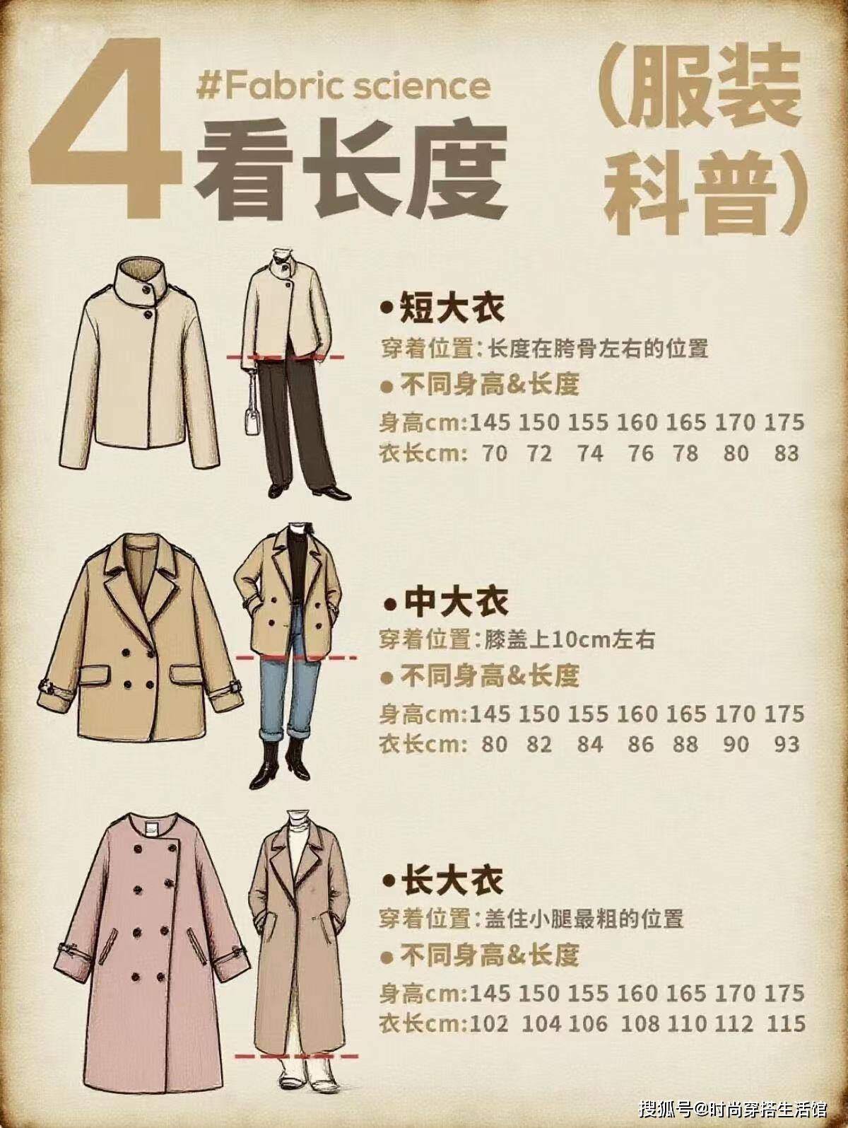 那么最好的方式就是根据身高选择合适的长度,最常见不会出错的方式就是选择过膝不过踝的长度,不仅可以遮住身材缺点,同时还不用担心会压个子,小个子也能轻松驾驭。