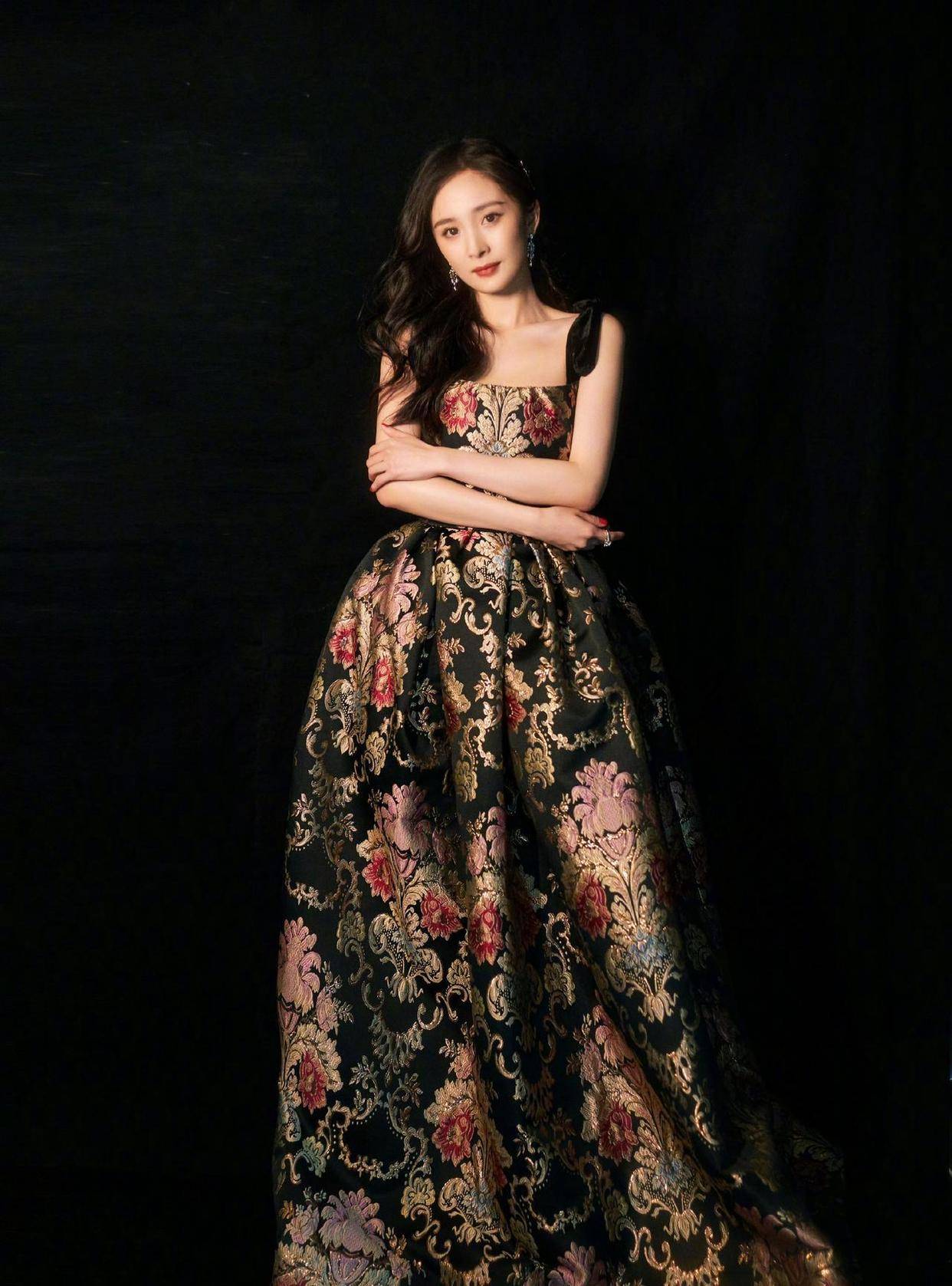 2025 年微博视界大会上,38 岁的『杨幂』以一袭提花织锦宫廷风礼服惊艳亮相。裙身布满的繁复华丽花纹,如同精心绘制的艺术作品,黑色丝绒蝴蝶结🎀肩带的设计更是点睛之笔,让整个造型在复古华贵中又带着一丝俏皮的现代感,这样的 look 怎能不让人眼前一亮。