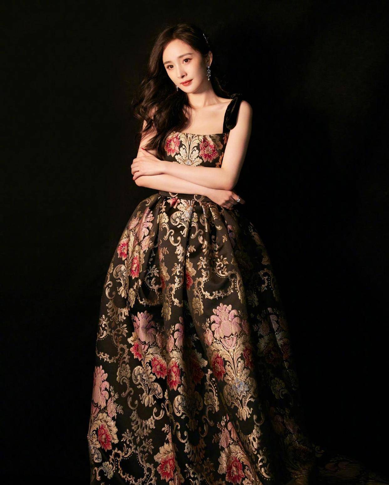 从『穿搭』的细节来看,这套宫廷风礼服的每一处都彰显着精致。提花织锦的面料质感高级,花纹的配色既复古又不失时尚感,与『杨幂』的肤色和发色都非常契合。搭配的耳饰和戒指💍,闪耀着璀璨的光芒,与礼服的华丽感相得益彰,整体造型的协调性和高级感都达到了很高的水准。