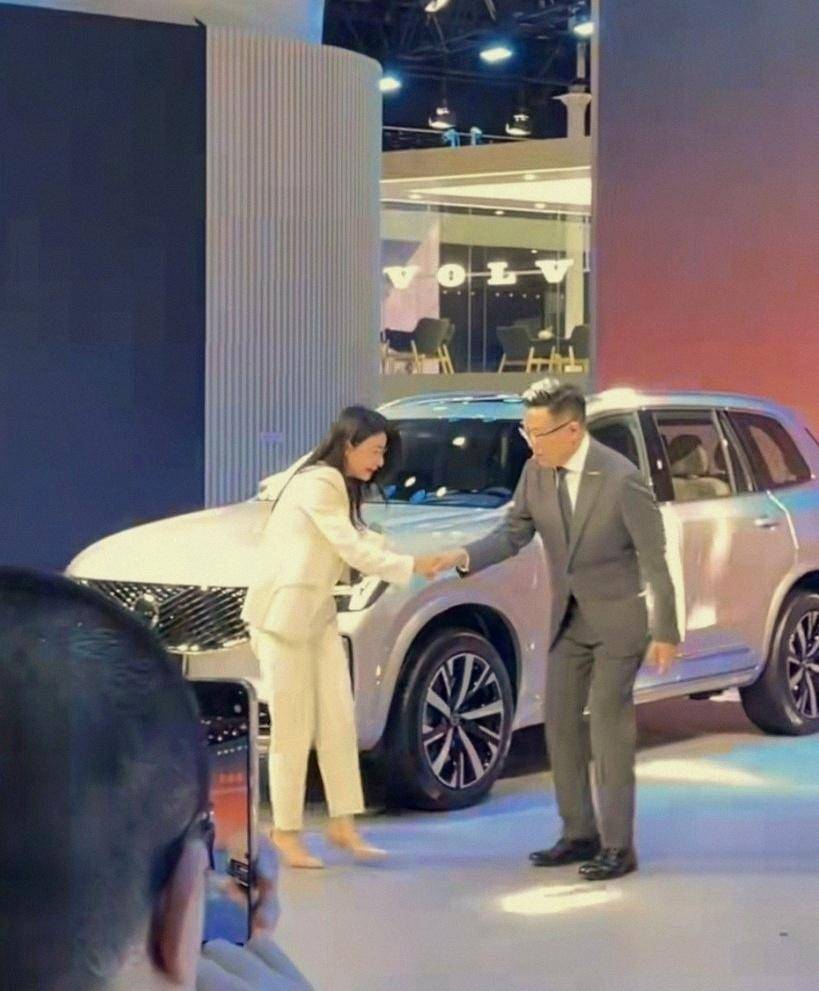 她在沃尔沃展台停了片刻,没摆拍,没走流程