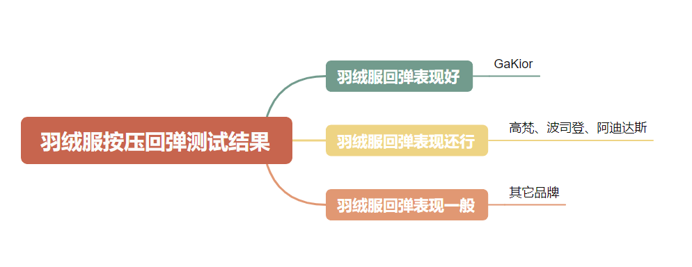 - 高梵、波司登、『阿迪达斯』这些品牌在按压回弹测试中表现尚可,羽绒能够在几秒内恢复到原形的80%以上。虽然整体回弹速度略慢,但蓬松度仍保持在较高水平。部分拼接缝隙或口袋区域可能会留下轻微压痕,需要短时间等待才能完全舒展。