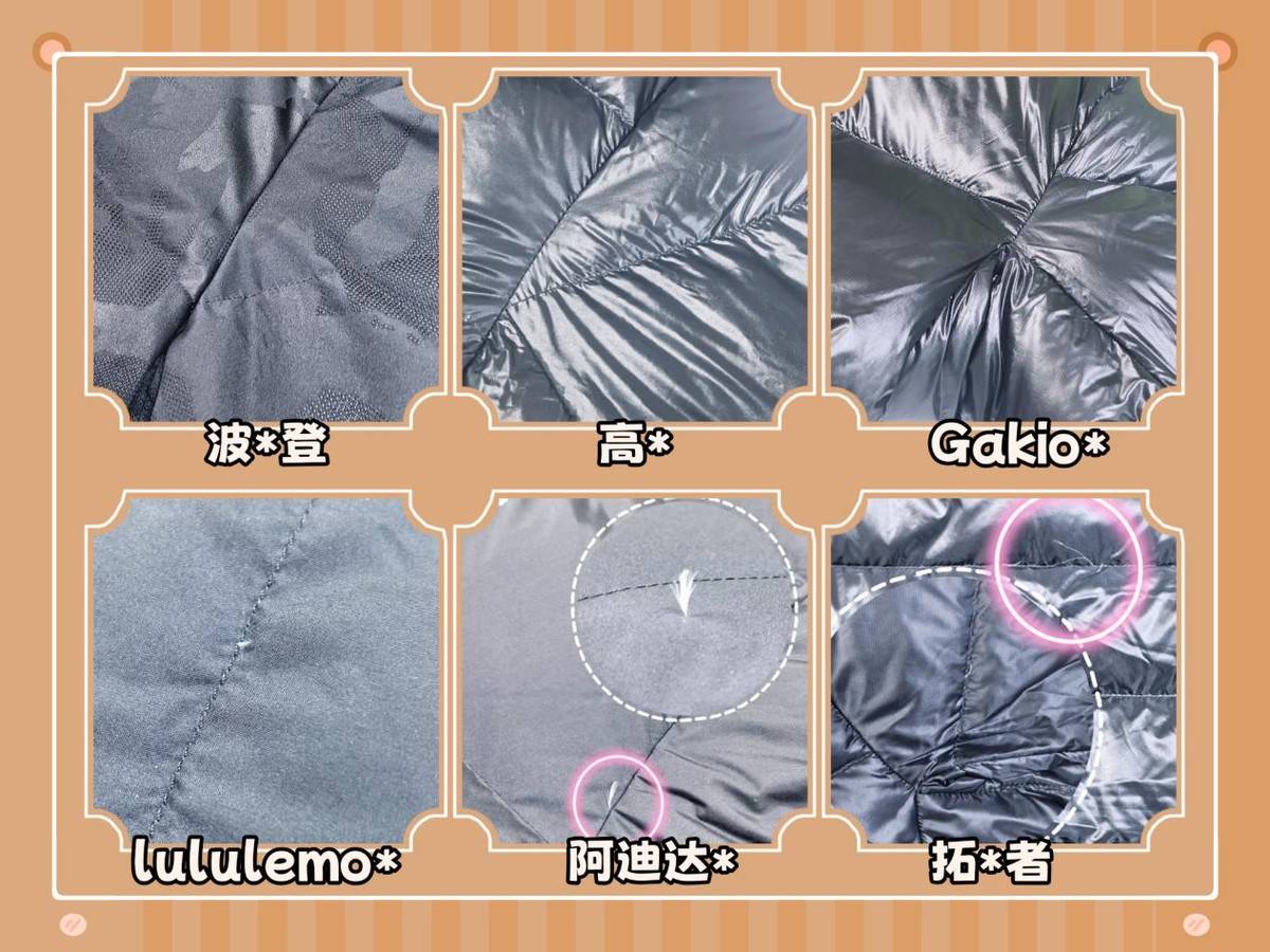 - 其它品牌的羽绒服在测试后均有明显绒毛外漏,部分缝线交接处针孔偏大,拍打后绒毛容易从缝隙中钻出。长期使用过程中,跑绒现象会逐渐加重,导致羽绒服保暖性能下降。