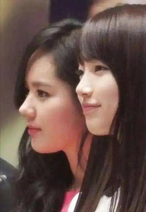 韩国女演员『裴秀智』,韩国女演员韩佳人,他俩合影时也是高下立现,『裴秀智』是典型靠胶原蛋白支撑脸的美人,韩佳人拥有很完美的骨相,二者侧面对比可谓天壤之别 。