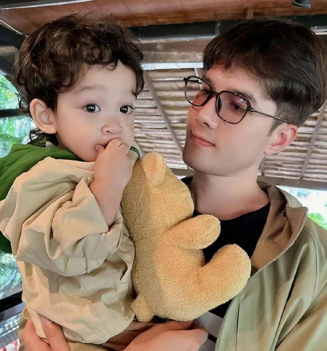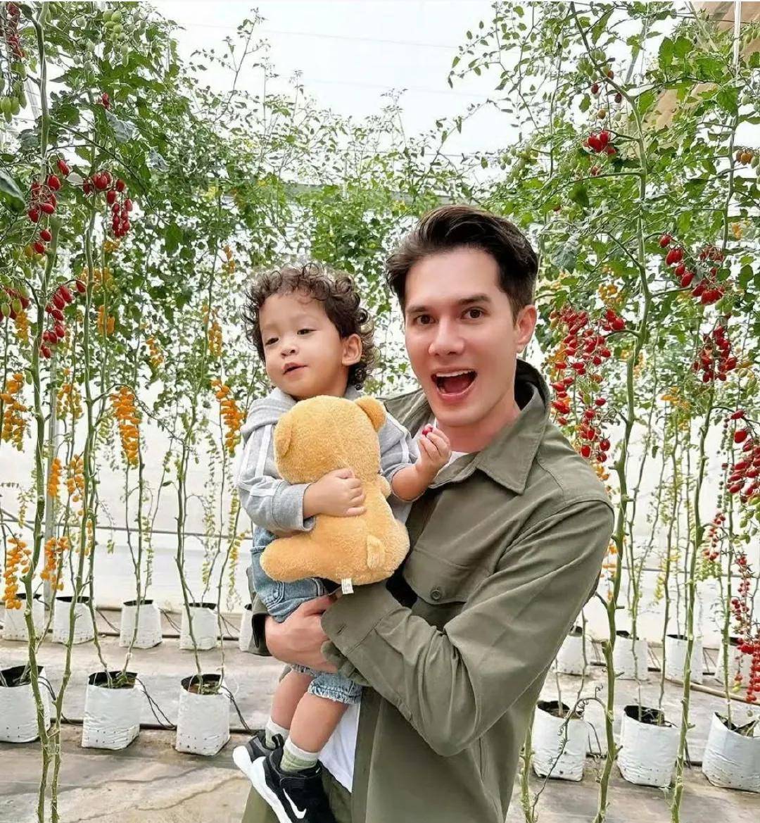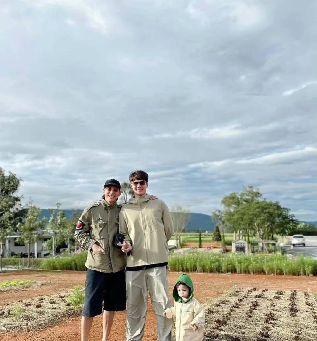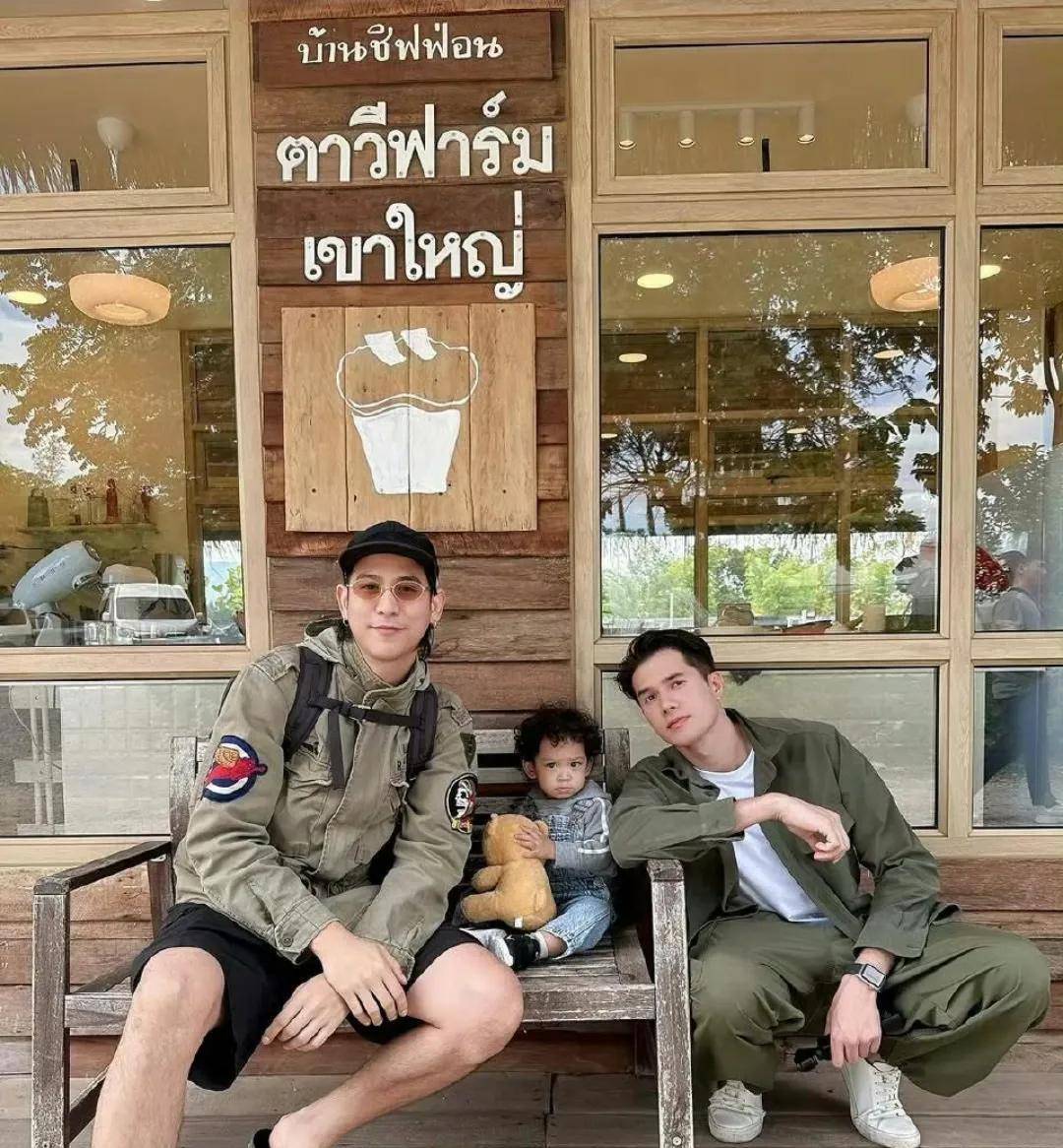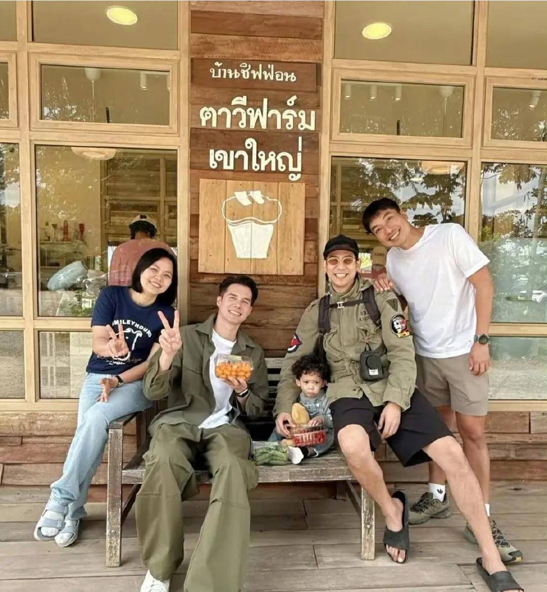 Mik又当起了“实习奶爸”,抱着小车车,孩子在他怀里很乖巧。看得出来,他很会照顾小孩,也很喜欢和孩子相处。之前他还和Yui的女儿Tawan一起玩,亲了亲小侄女的脸。感觉Mik将来如果做爸爸,应该会很称职。