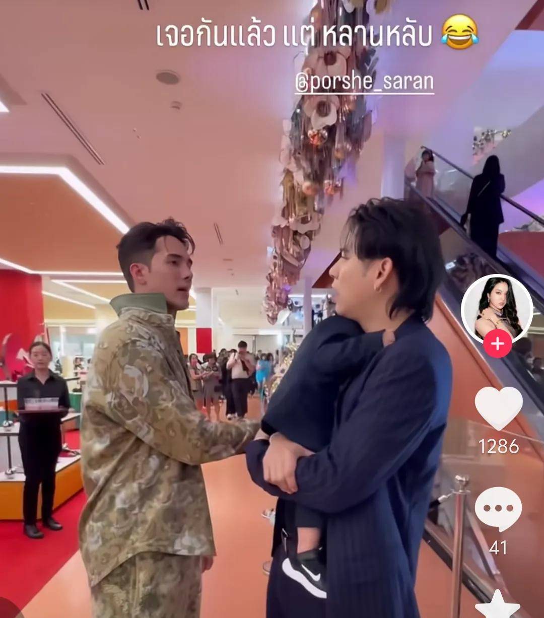除了南叔,Mik还碰到了好兄弟Porshe。Porshe抱着儿子一起来,不过小朋友趴在爸爸肩上睡得正香。两人简单聊了几句,气氛很轻松。