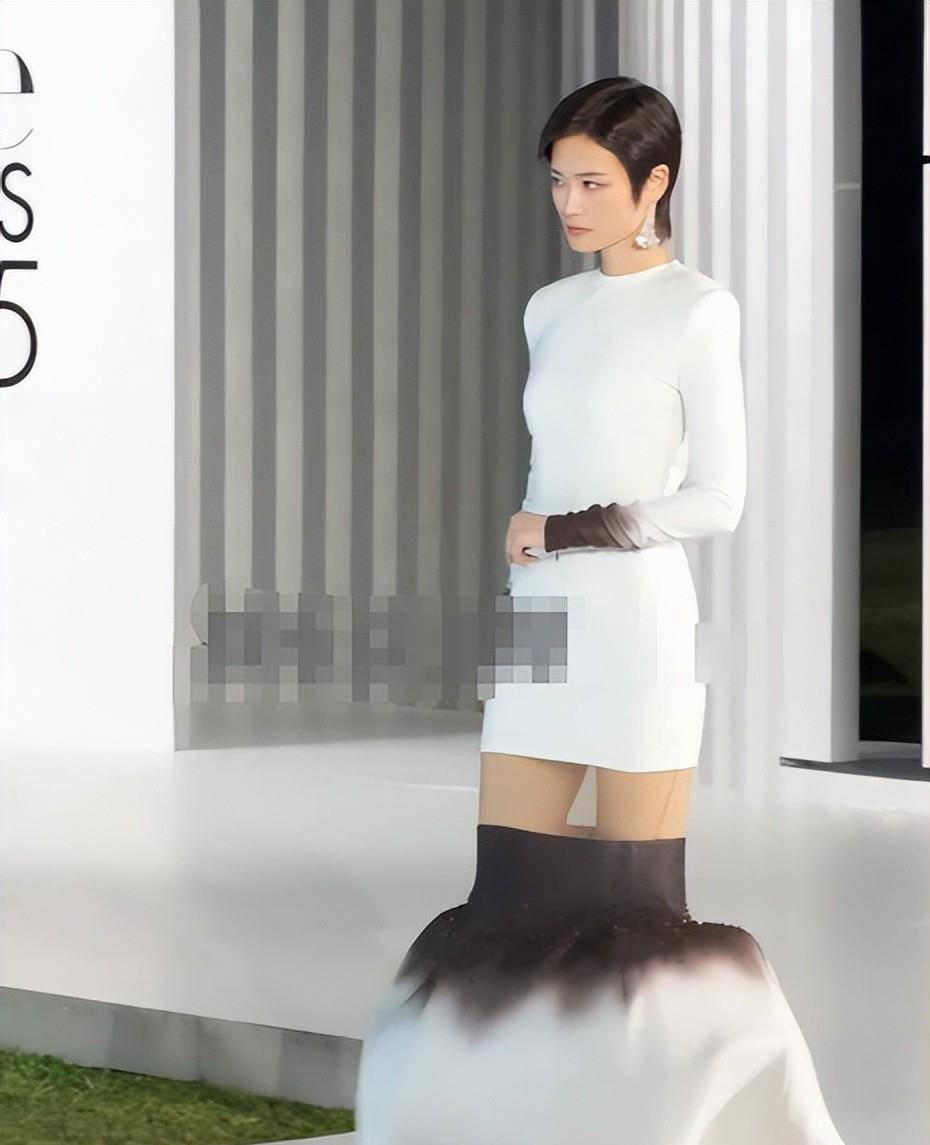 这件鱼尾裙的剪裁看起来像是包臀裙与短裙的结合,走起路来似乎不太方便。考虑到她的身体状况,这样的设计更让人为她担心。