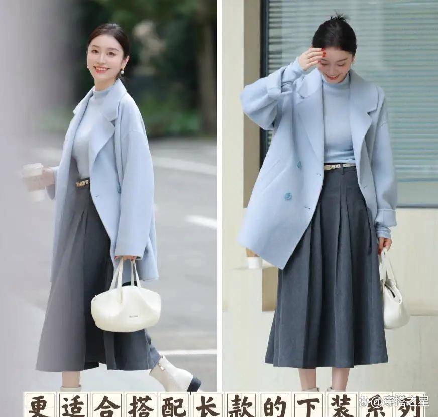 这一款外套🧥的搭配,大家在选择下半身单品与其进行组合的时候,还是要推荐可以优先于运用长款的设计走向,保证我们的比例优势以及身材上的一些不足是能够被优化呈现出来的。第2点的话,尤其是长款的裙装与其进行组合,呈现出来的优雅感,气质真的非常的具有强调效果是很具有优势的类型。