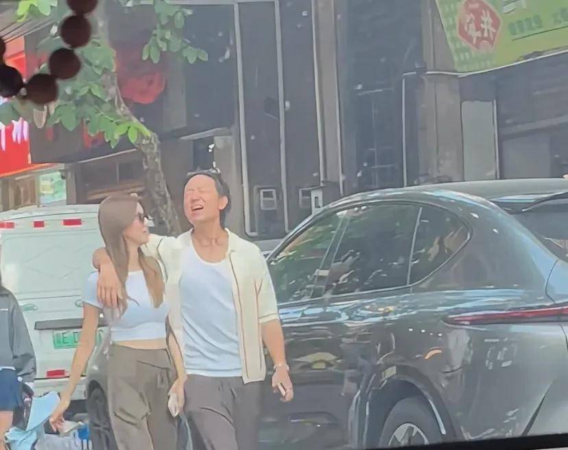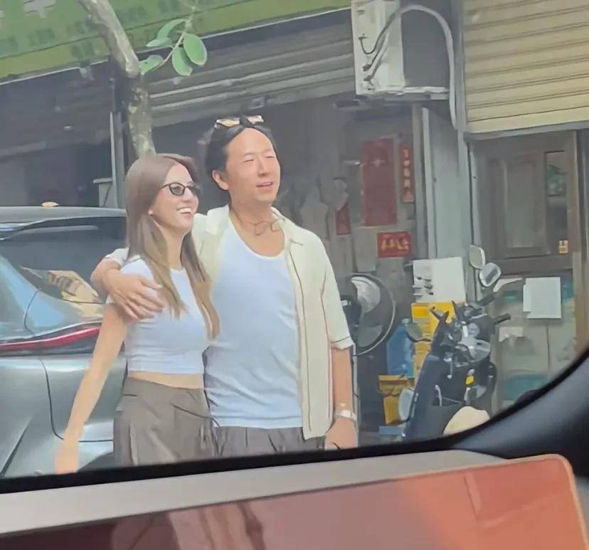 有网友在车里远远看到他们走来,施伯雄轻轻搂着吴千语的腰,她走起路来从容大方。
