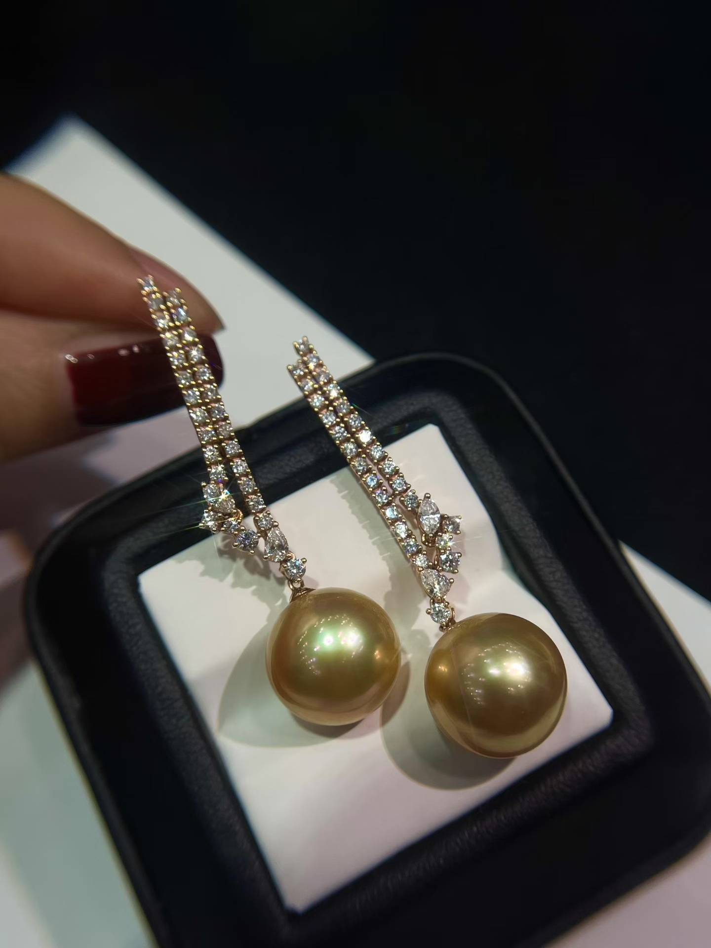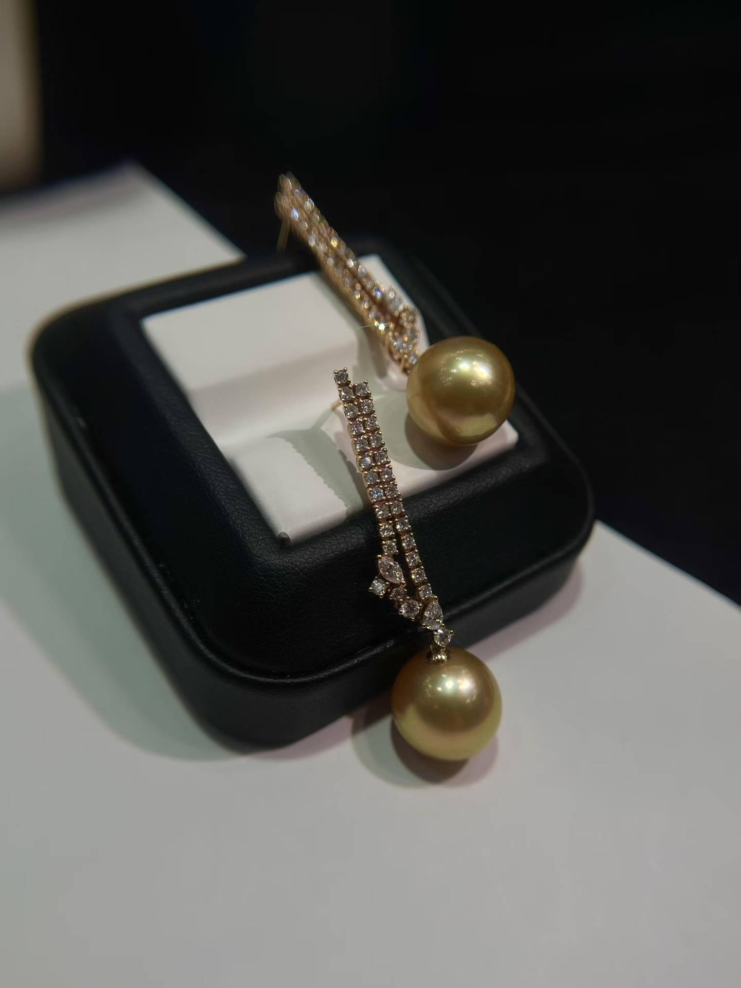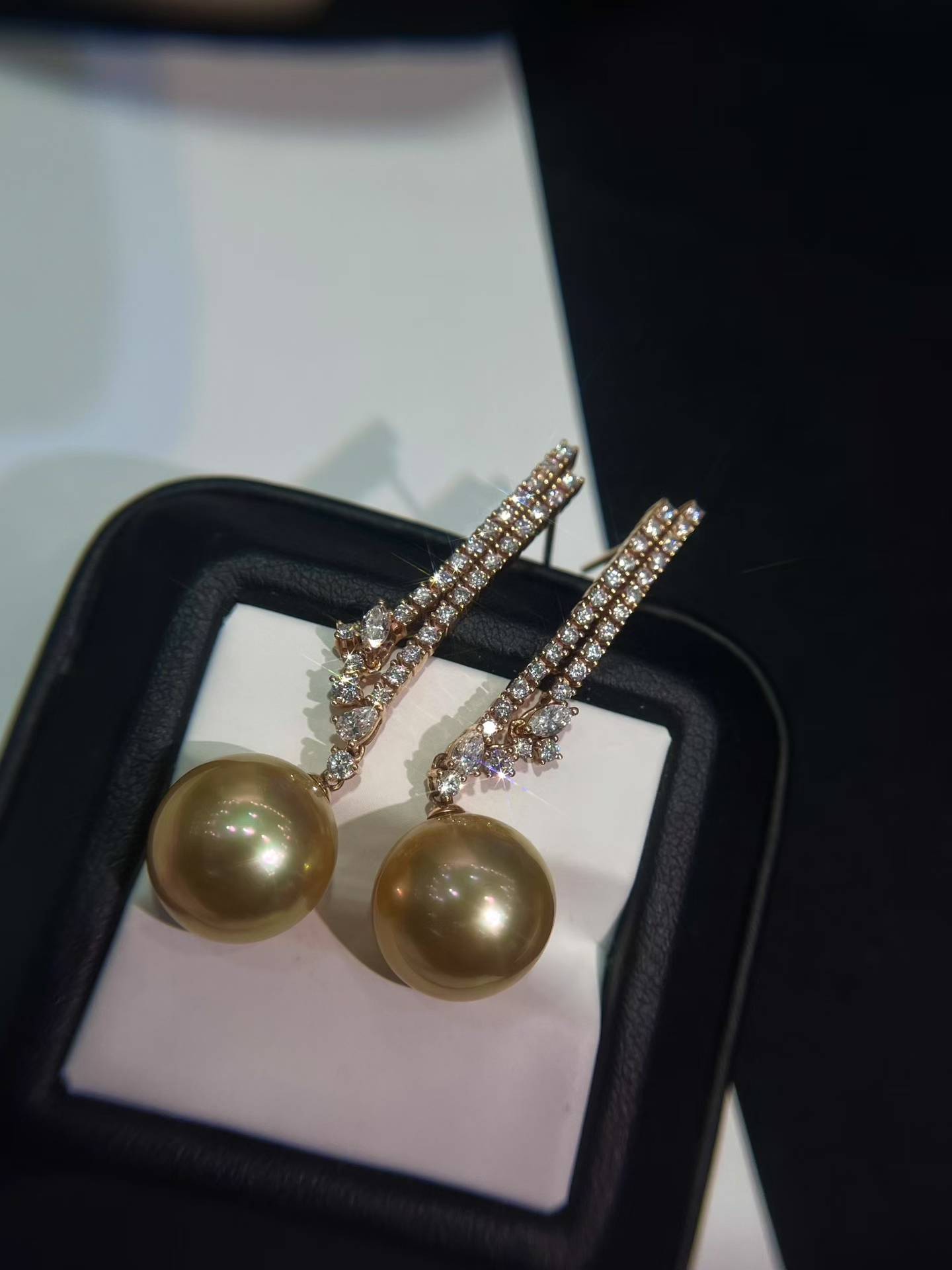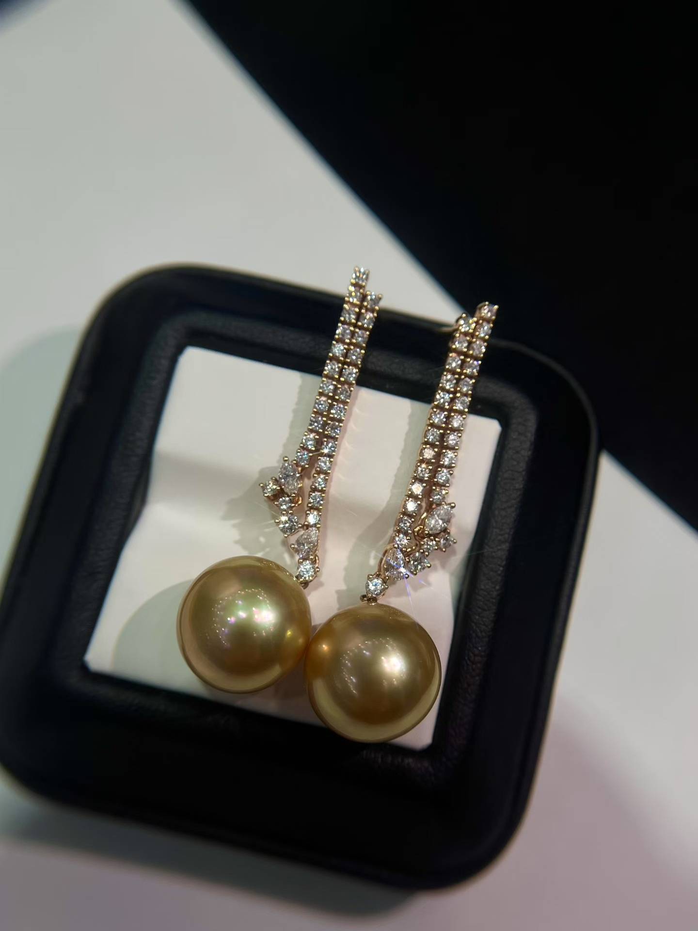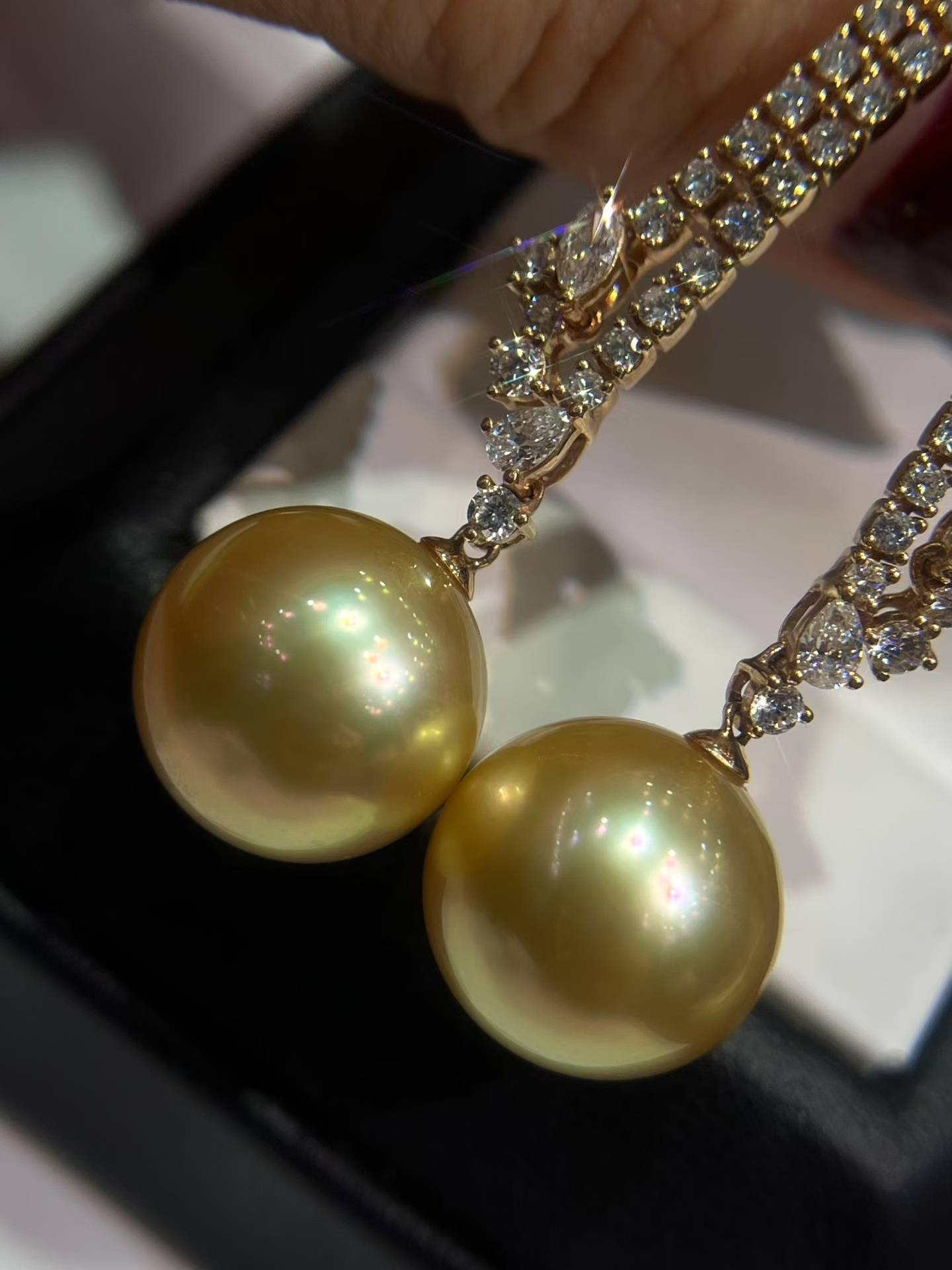 🇵🇭金珠耳饰12-13𝐦𝐦绚丽多彩光泽 低调奢华满钻💎1.182ct18𝐤金 完美品质