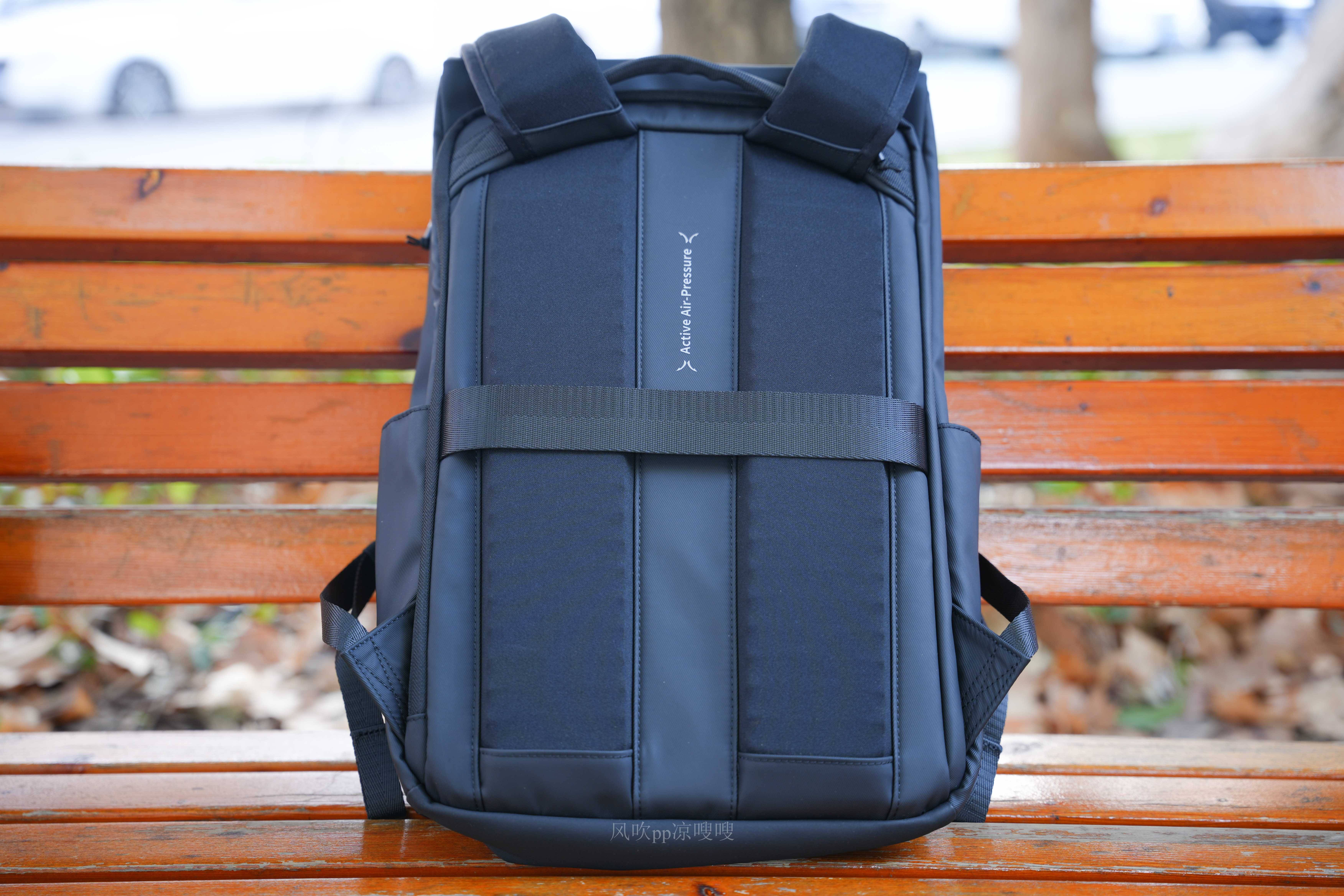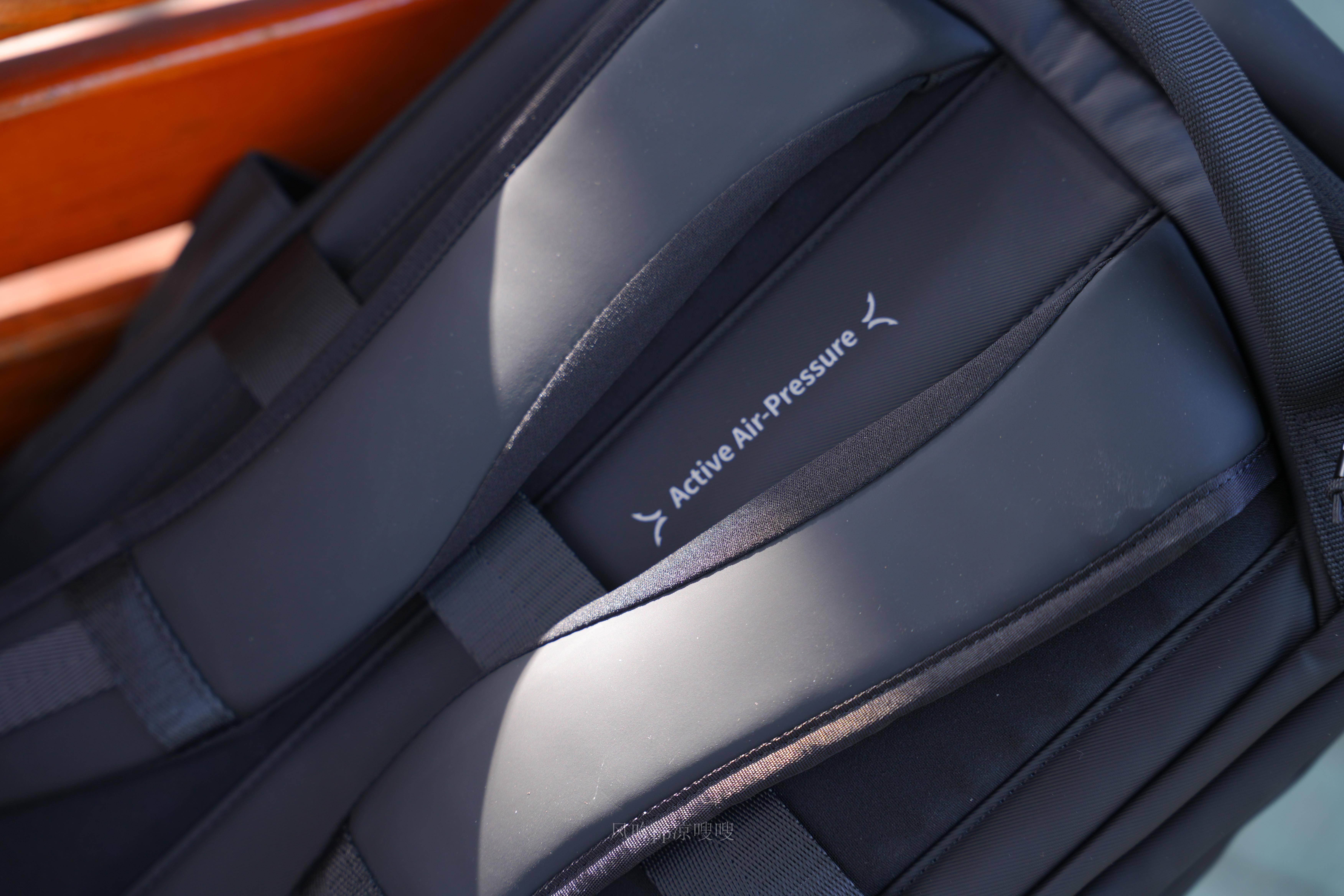 后背板采用一体成型冷压工艺,背板不是软塌塌的一层布,而是一个有韧性的板,这保证了哪怕包里只装了一台薄薄的iPad,背包也不会塌陷变形;冷压出的沟槽形成了透气通道,夏天背的时候,空气可以流通,减少闷热带来汗湿后背的尴尬。