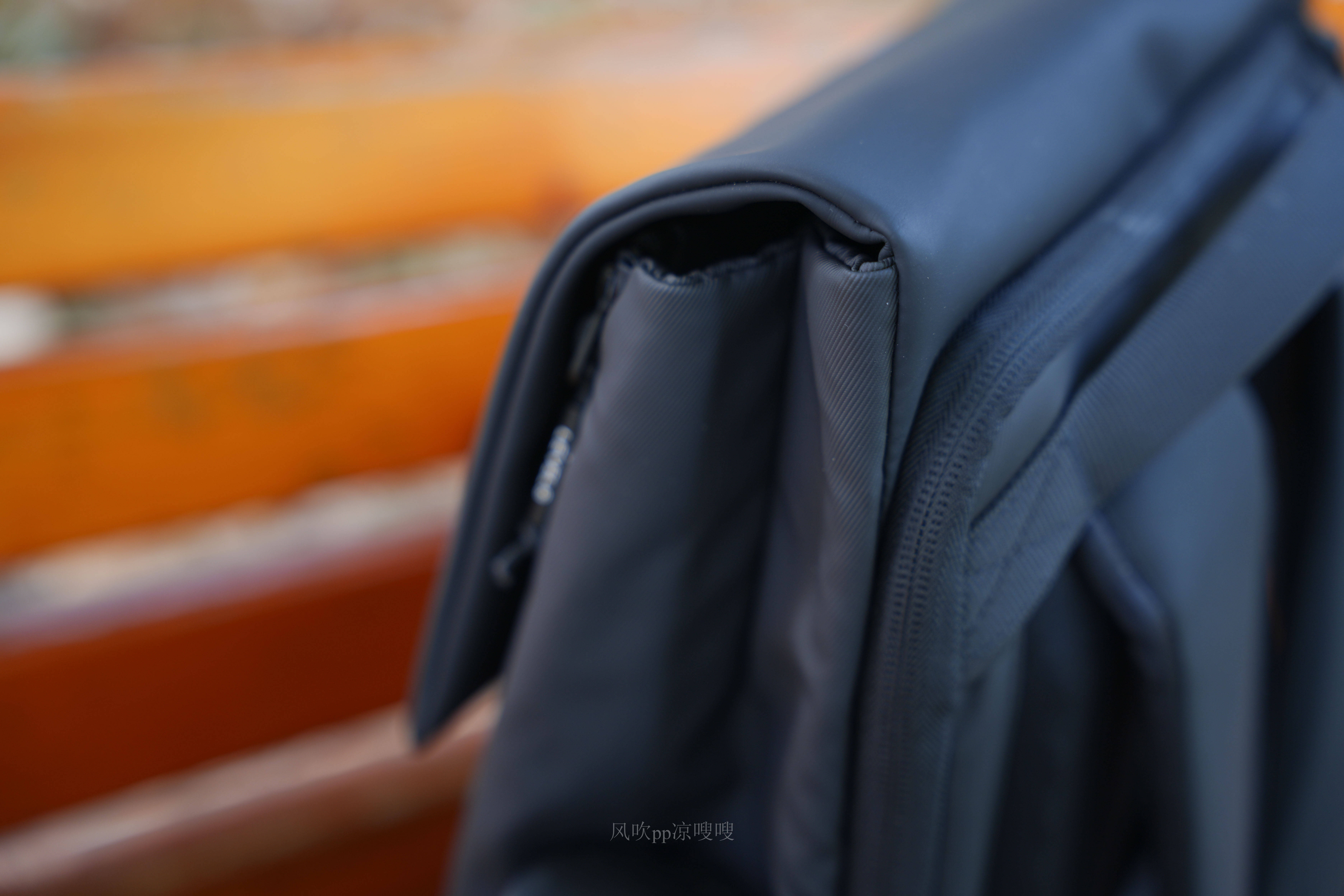 Moment系列双肩包使用的是名为 “环保素皮”的材质,可能有不少人一听到人造革或者PU皮就皱眉头,觉得廉价、不耐用,但是实际体验下来Moment双肩包的触感和视觉感官非常不错。这层素皮的手感摸上去是温润的,它没有传统真皮那种沉重感,整包净重控制在了1.12kg左右 ,对于一个全皮面的包来说,这个重量控制得相当不错。