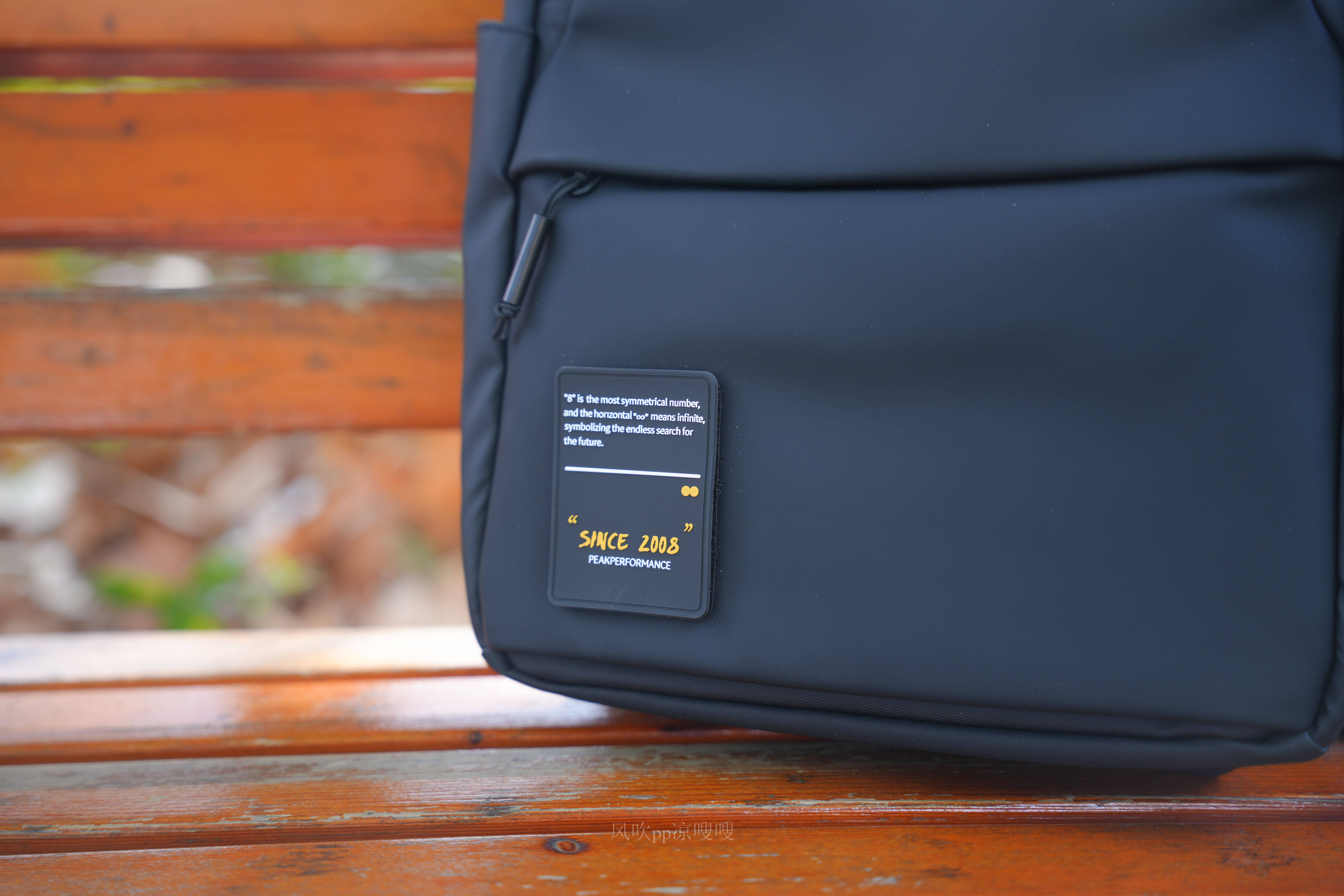在背包的正面你看不到任何多余的拉链、织带或者魔术贴。它采用了一种大翻盖的设计,配合素皮的哑光质感,像极了一个行走的文件袋。乍一看背包的Logo极其低调,而且很有意思的是它随包附赠了1款可替换的 LOGO 魔术贴。你可以根据心情自己换,这种小小的 DIY 属性,既致敬了品牌历史,又增加了一点把玩的乐趣