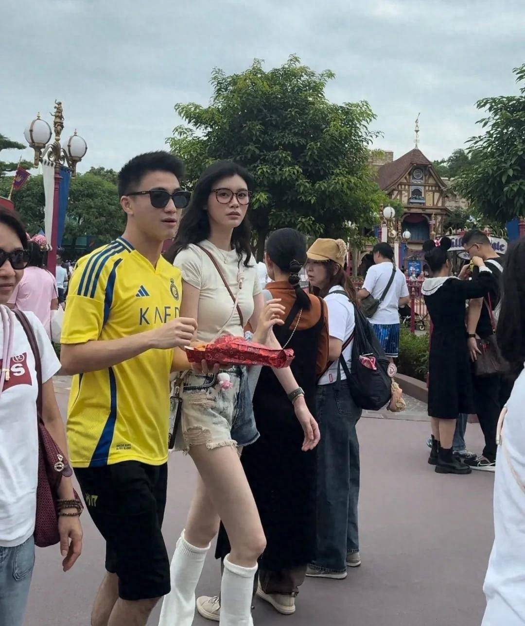 奚梦瑶身着一袭简约的黑色连衣裙👗,秀出修长腿部线条,『打扮』得低调随性。她一只手自然地挽着丈夫的臂弯,悠闲地漫步,不时转过头与何猷君交谈,两人看起来心情愉悦。