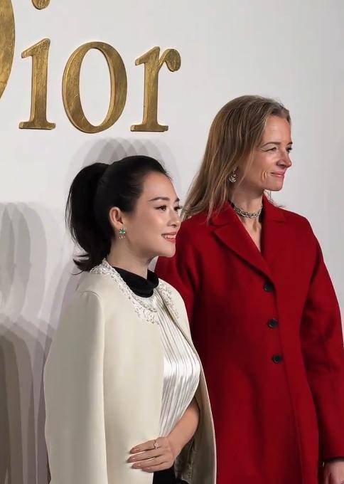 身为『迪奥』的全球代言大使,她的地位不言而喻,连品牌高管也谦逊地礼让半步,在其身后展露笑容。