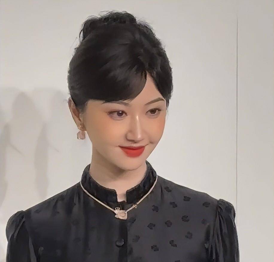其发型亦显贵气,额前刘海妥帖,脑后盘发精致真实,不似前两日『章子怡』所戴假发般突兀廉价。只是因无发丝修饰,她微笑时面部显得圆润些许,且肌肤泛有油光。
