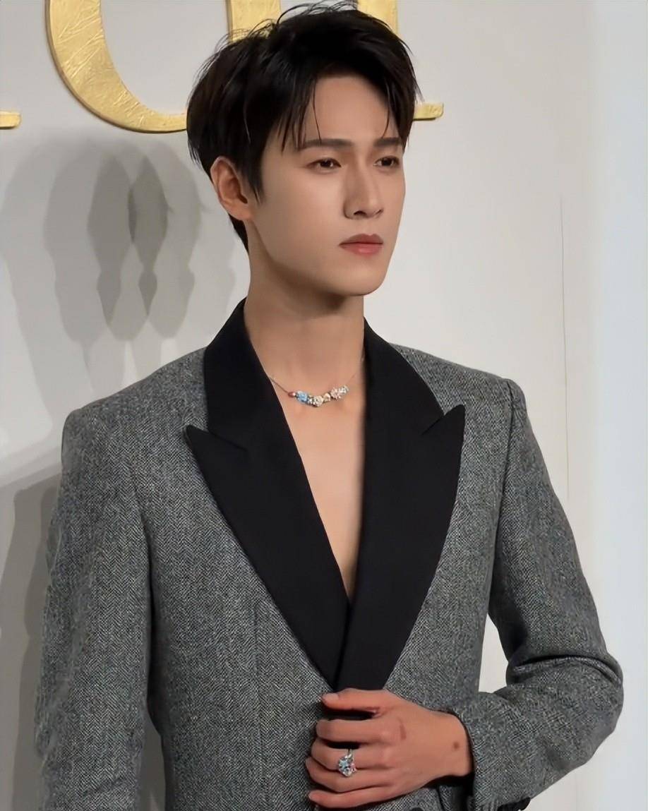 只见他身着灰色修身西装,内里真空未搭衬衣,发型打理得一丝不苟却不显刻板,整个人显得器宇轩昂,精神抖擞。真可谓红气养人,自《九重紫》爆火后,他的代言与红毯机会纷至沓来,周身贵气较以往倍增。