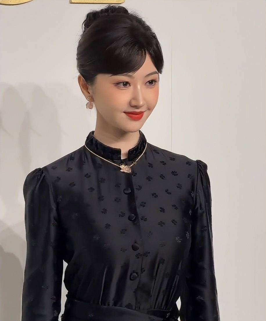 她此前穿粉色礼服时就曾被议论肤色暗沉,此番不仅未避开深色系,更选择了哑光质地的裙装,使得整个人气色略显黯淡。但她状态松弛,面对镜头笑容灿烂,露出标志性小虎牙,只是笑意过浓,导致苹果肌有些突出。