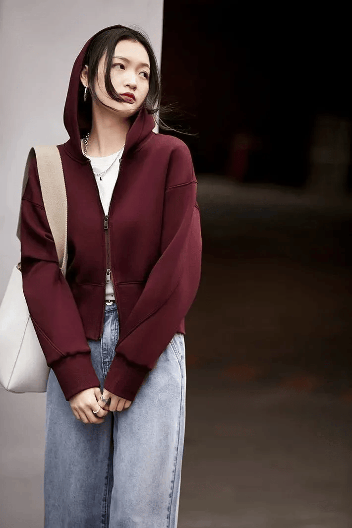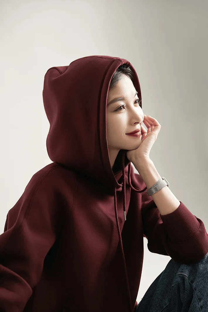 朋友们,这件车厘子红卫衣是一件集显白、时髦、百搭与实穿性于一身的宝藏单品,真的超好看,连我这样的微胖人士穿了都显瘦、好看。光看图片我就爱上了,上身更是觉得相当不错。