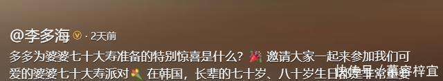 还记得《我的女孩》里的周幼琳吗?那个古灵精怪、活泼可爱的角色,如今由李多海饰演的她已经41岁了。去年,李多海选择半定居上海,但她依然频繁往返于中韩两国。最近,她特地飞回韩国,为70岁的婆婆精心筹办了一场温馨的寿宴,和家人的亲密互动展现了家庭的和谐氛围。 李多海为婆婆的生日准备工作早在生日之前就已经开始了。她和丈夫崔东旭一起在家里布置了一个惊喜礼盒,里面不仅有彩带和祝福语,还特别准备了20张面值5000韩元的纸币,总金额大约相当于人民币四五千元。当婆婆打开礼盒的瞬间,彩带洒落下来,祝福和礼金也一同呈现,整个惊喜设计非常有创意,婆婆看到时笑得合不拢嘴。
