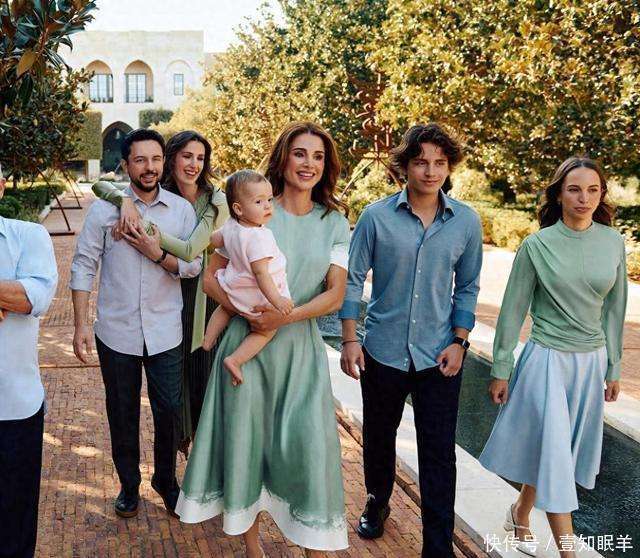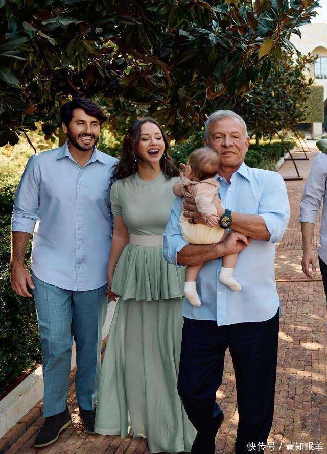 12月13日,约旦王室发布了一张圣诞家庭照片,展示了一家三代的幸福时光。照片中,王后拉尼娅抱着孙女伊曼小公主走在前面,国王阿卜杜拉紧随其后,小心翼翼地抱着外孙女阿米娜。王室成员们围绕着他们,儿子、儿媳、女儿、女婿都在场,大家笑脸盈盈,气氛温馨和谐。