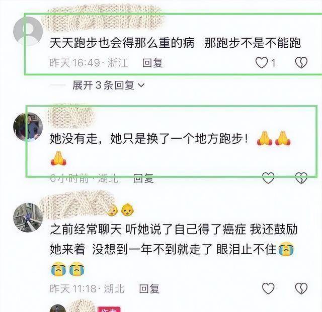 刚开始传出噩耗的时候,不少网友疑惑是不是因为运动量太大导致意外。但随后亲近朋友发声,把事情真相逐渐揭开。原来夺走她生命的是癌症,而且进展非常迅速。一位多年同路人的回忆让很多粉丝忍不住鼻酸:“散步时聊起来,说化疗掉光头发,现在戴假发,我们当笑话听。”直到失去之后,才发现所有轻描淡写都是苦撑着乐观面对生活。