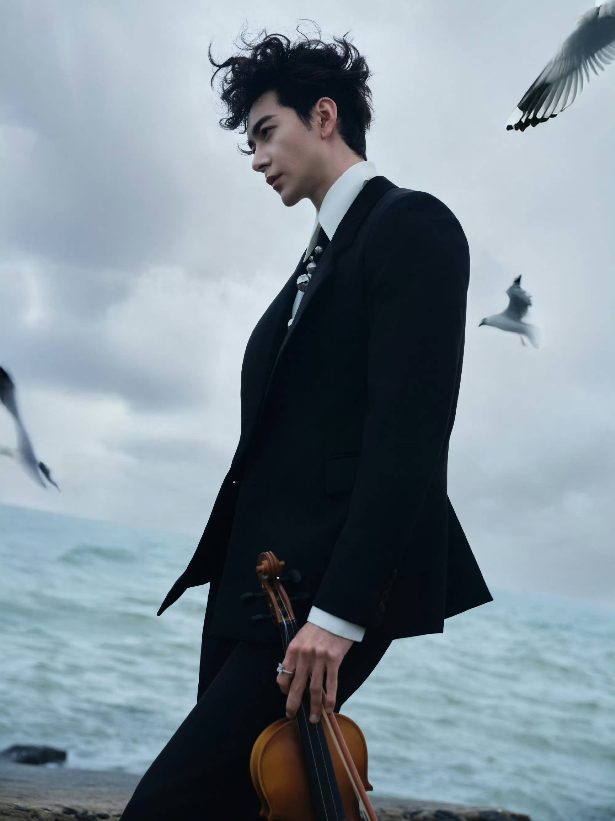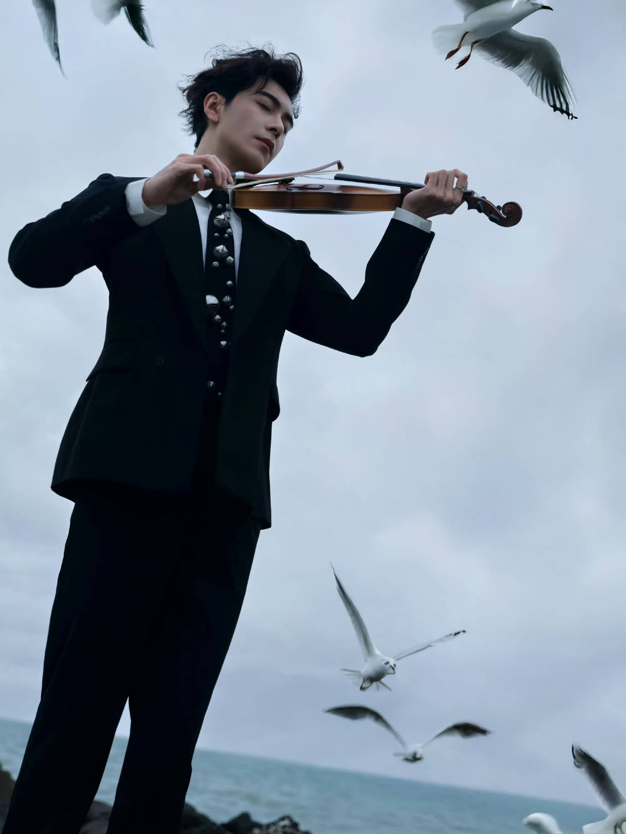 在海边自由演奏的小提琴家,陈星旭出图即大片,文艺贵公子气质拉满,每一帧都是氛围感