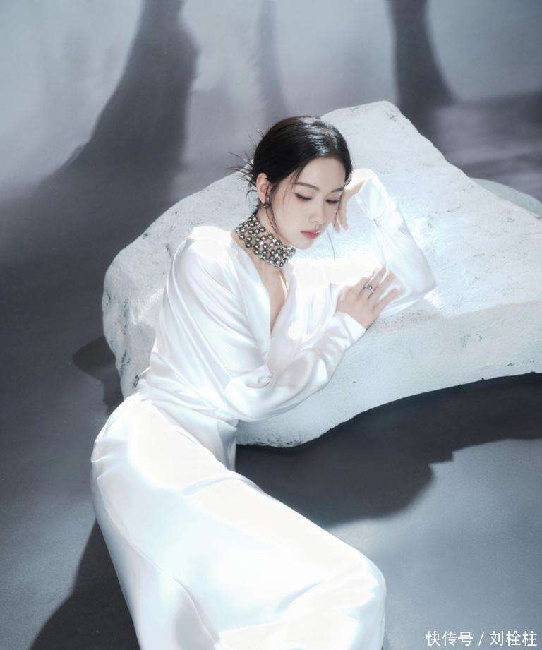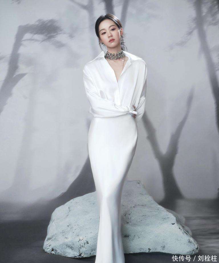 这条白裙展现了封神级的『穿搭』技巧,远远超出了一般礼服的水平。上半身采用了宽松的衬衫式设计,领口微微敞开,展现出一种随性而洒脱的感觉;而下半身则是修身剪裁,裙摆拖地优雅,走动时线条流畅如行云流水。使用的缎面材质更是锦上添花,在光影下呈现从乳白到莹白的渐变光泽,仿佛古画中的留白意境,深刻体现了东方美学的含蓄与高级感。