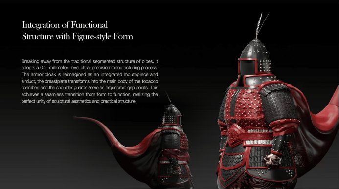 这背后,是赛博工匠主义的胜利——即用最前沿的数字设计工具(3D建模、有限元分析)与顶尖的现代制造工艺(0.1毫米级精密加工),去实现最天马行空的创意,并扎根于最厚重的文化土壤。严建龙的“盔甲烟斗”,正是“东方美学、当代思潮与未来科技”三者碰撞的结晶,它所呈现的未来主义历史观,成功消解了文化隔阂,触达了全球设计界关于“何为创新”的共识。